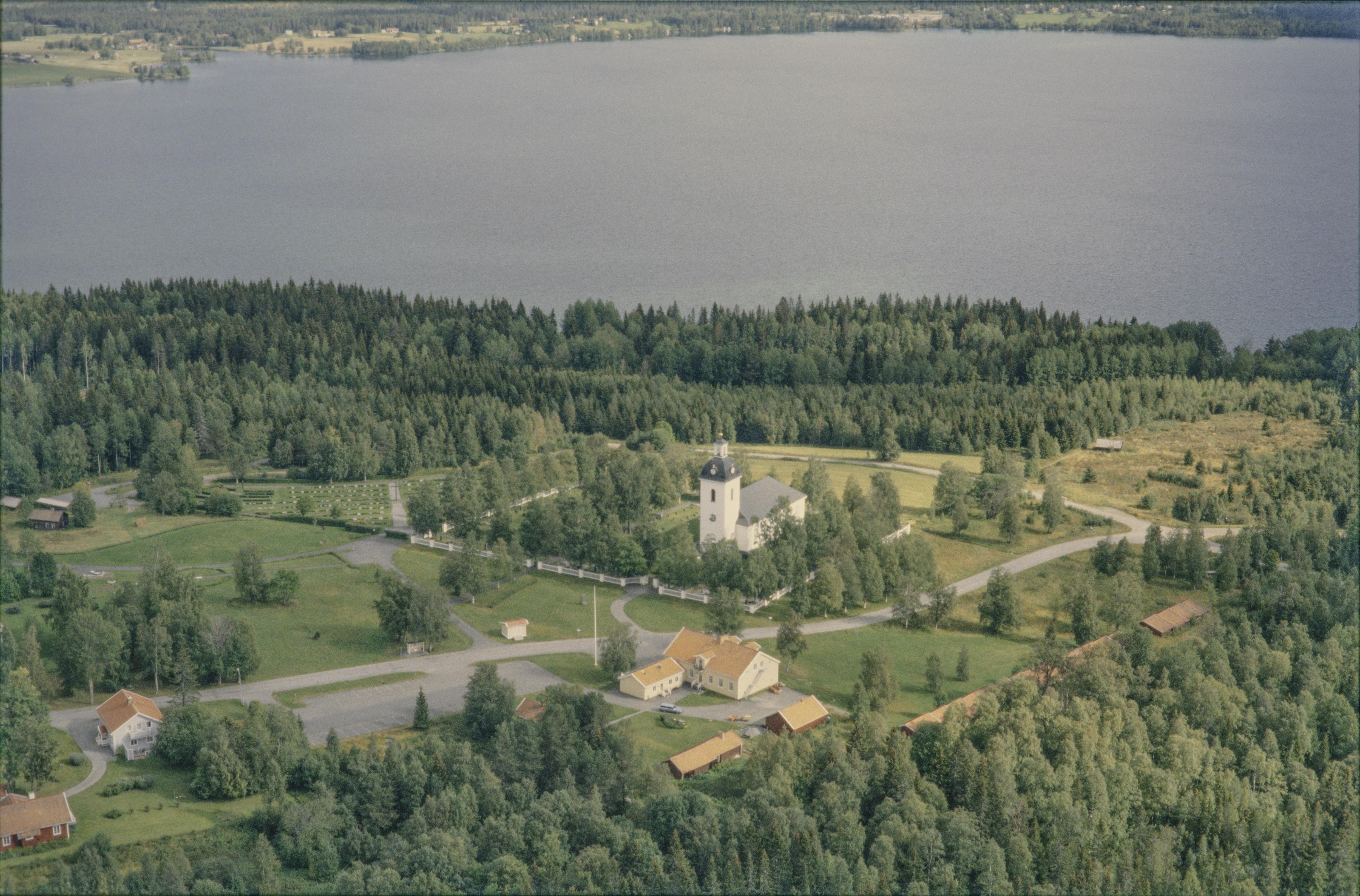 Beskrivning: Lockne kyrkby på västra sidan av Locknesjön. Lockne kyrka under bildens mitt. Vid kyrkan högarna RAÄnr Lockne 12:1, 13:1, 15:1, 32:1 m.fl. Bilden är tagen mot (väderstreck): NO