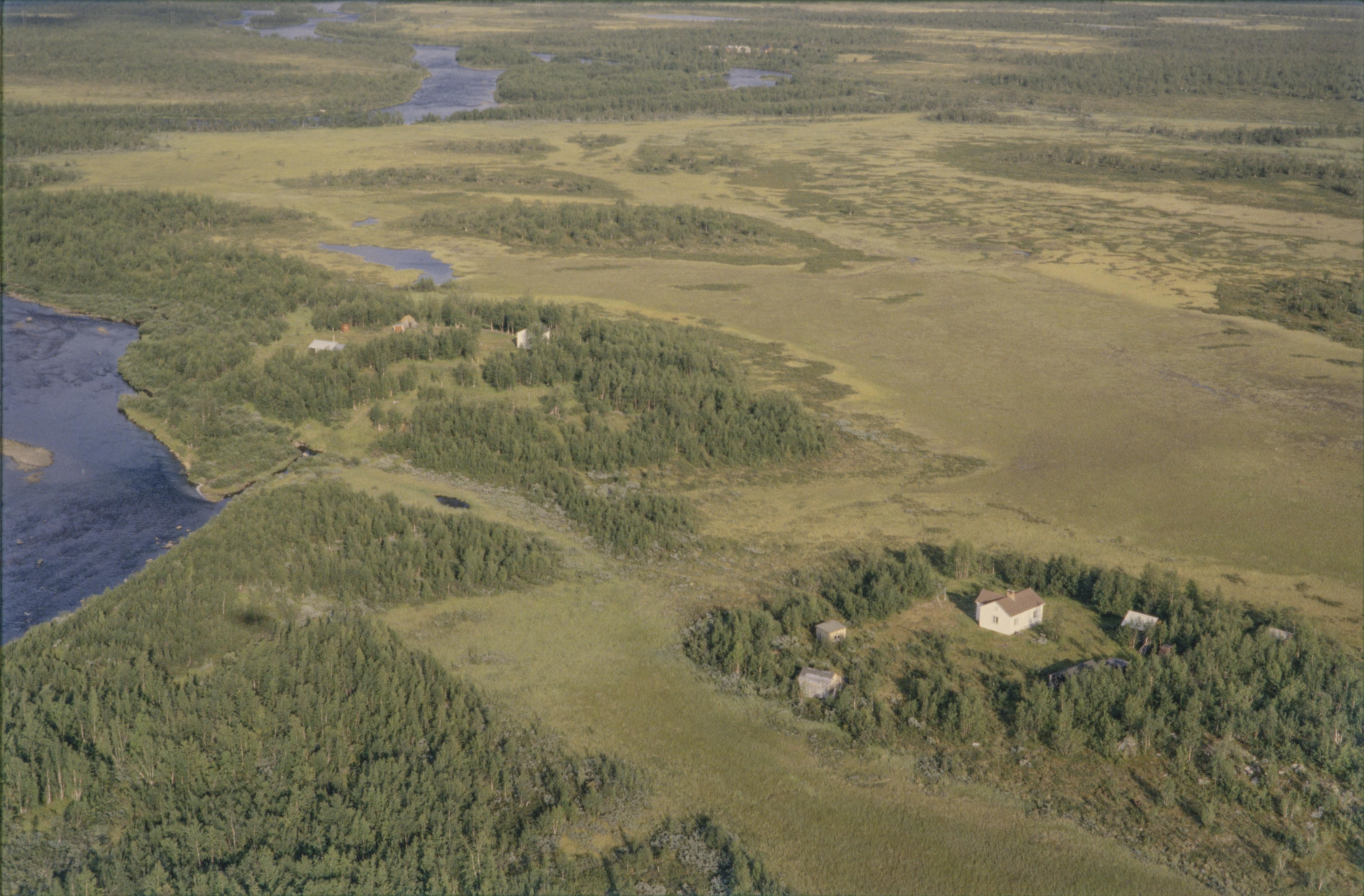 Beskrivning: Västra delen av Rautas (Rávttas) by vid Rautasälven (Rávttaseatnu). Området ingår i Gabna sameby och Rautas fjällurskogs naturreservat. Bilden är tagen mot (väderstreck): ONO