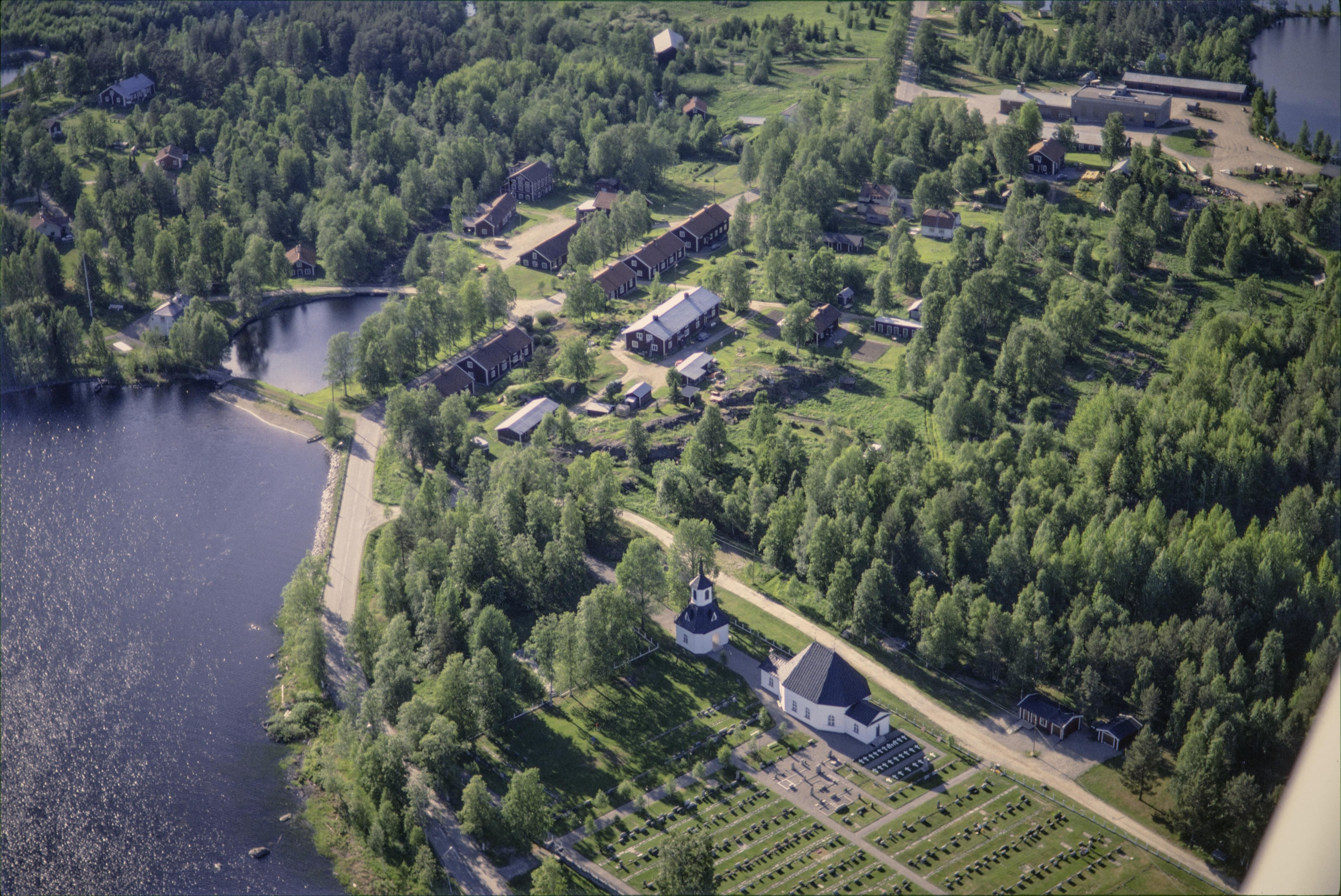 Beskrivning: Graninge bruk vid Bruksån och sjön Brukstjärnen. Hytt- och hammarområde RAÄnr Graninge 232:1-2. Graninge kyrka under bildens mitt. Bilden är tagen mot (väderstreck): NV