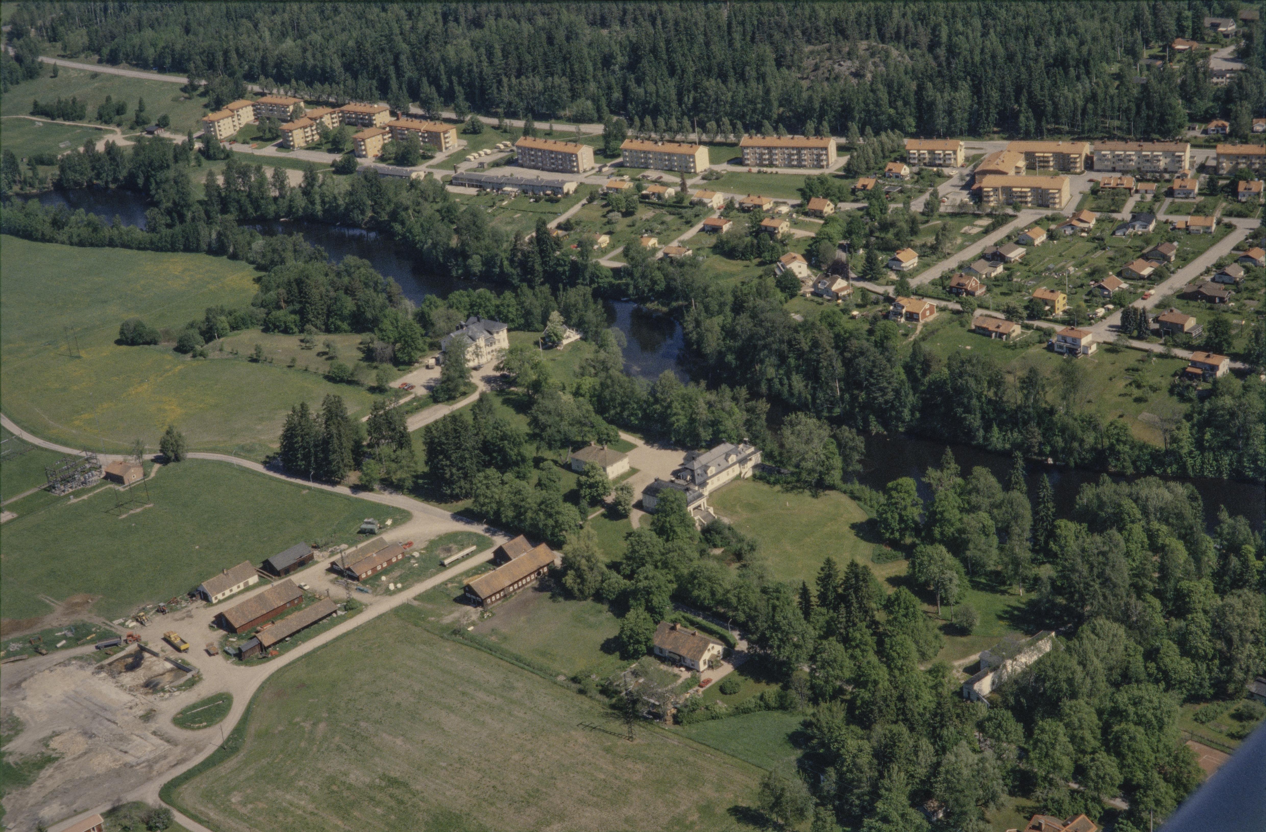 Beskrivning: Hedströmmen vid Kolsva bruk och tätort. Till vänster om bildens mitt Kolsva herrgård (skrivs även Kohlswa herrgård). Till vänster över bildens mitt fyndplats (yxor m.m.) RAÄnr Kolsva 251:1. Bilden är tagen mot (väderstreck): NNO
