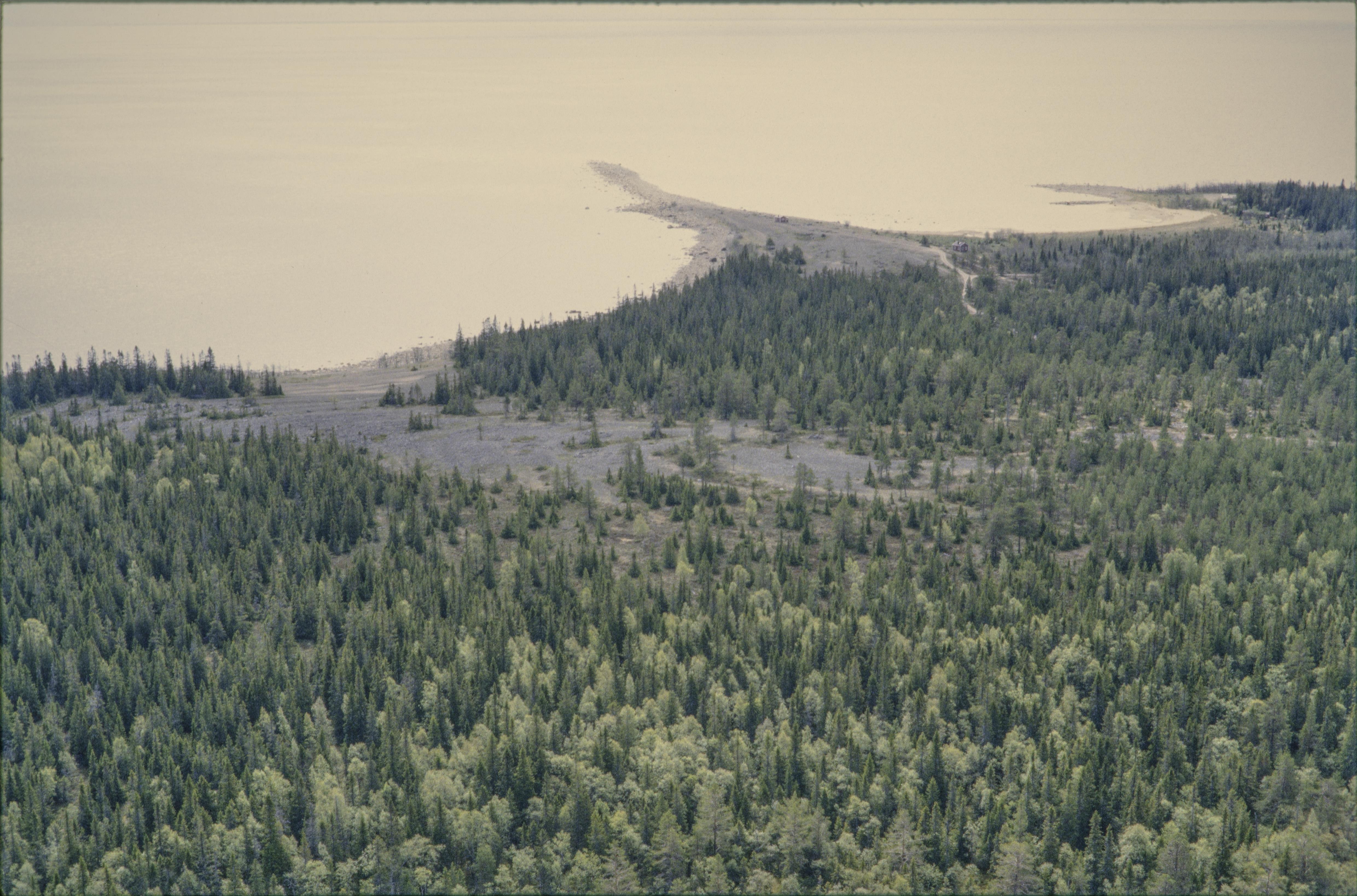 Beskrivning: Området Grundskatan i sydöstra delen av udden Bjuröklubb. Vid bildens mitt Grundskataräften och ett fornlämningsområde med fiskeläge, gravfält och labyrint RAÄnr Lövånger 78:1-2. Bilden är tagen mot (väderstreck): S