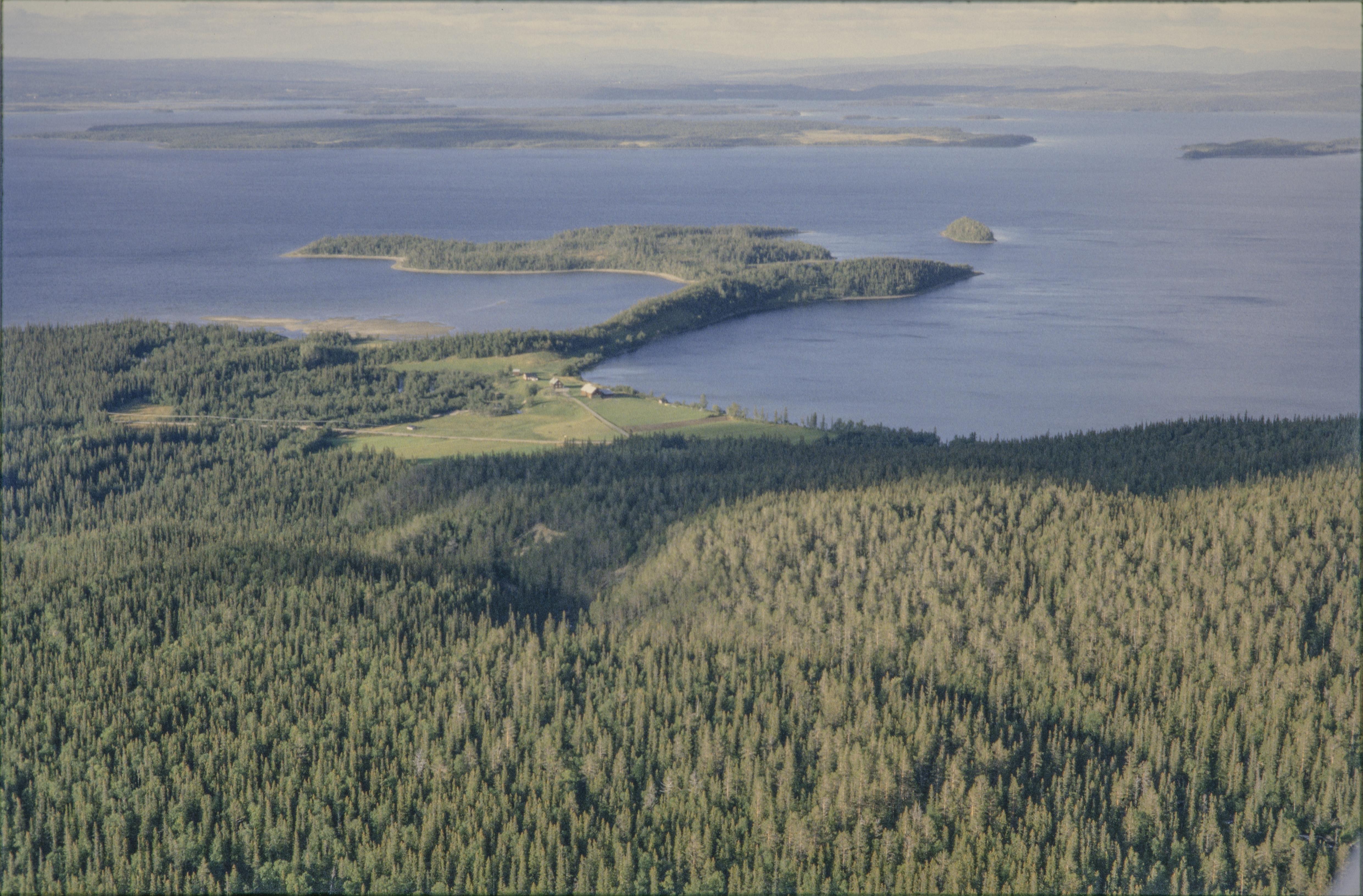 Beskrivning: Vid bildens mitt Bunnernäset vid Bunnerviken i södra delen av Ånnsjön. På näset boplats RAÄnr Åre 208:1, fångstgrop Åre 206:1-2, fossil åker Åre 368:1 och 369:1 m.m. Bilden är tagen mot (väderstreck): N
