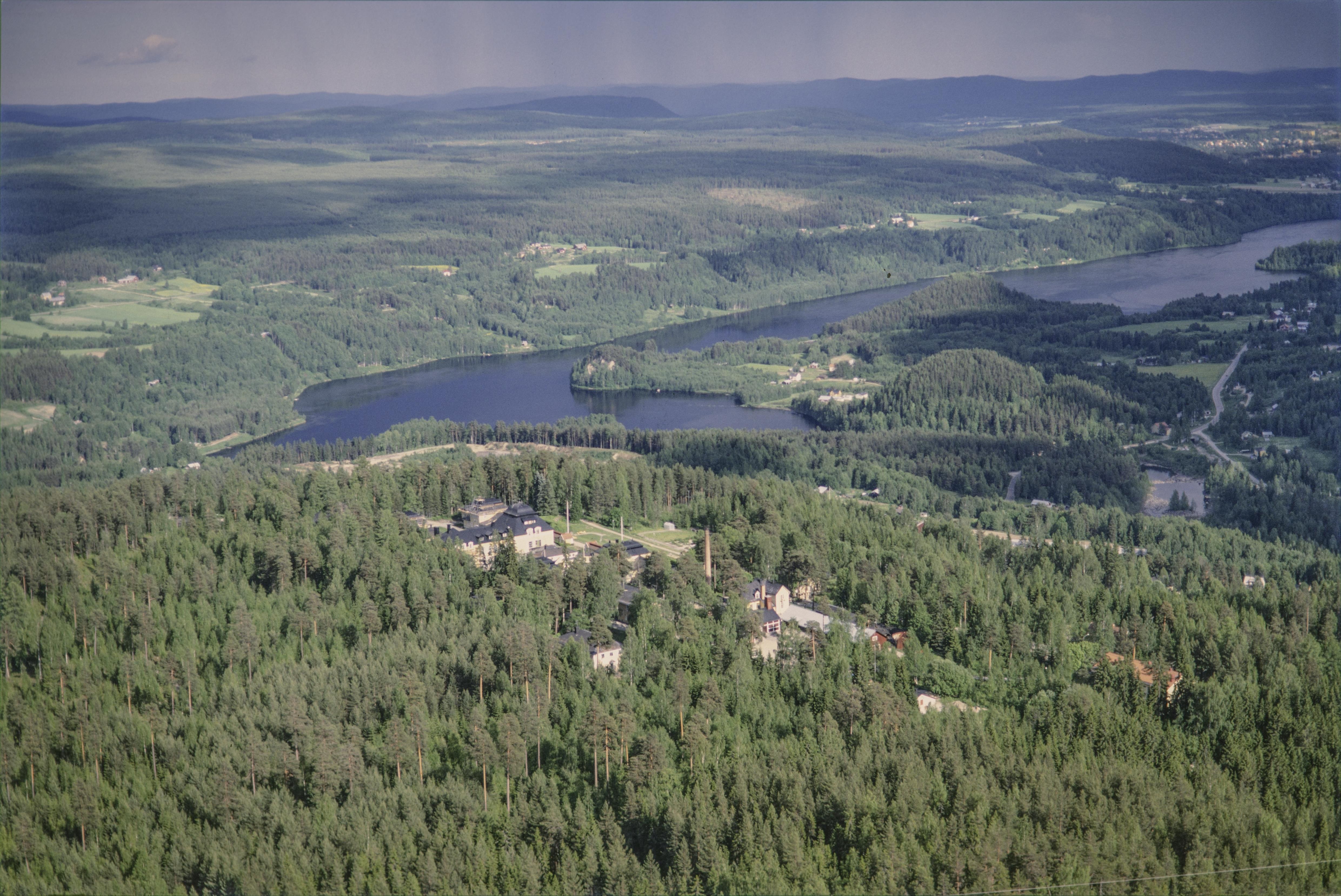 Beskrivning: Norr om orten Österås där Ångermanälven och Faxälven möts. Under bildens mitt byggnadsminnet Österåsens sanatorium och minnesstenen RAÄnr Ed 81:1. Faxälven över bildens mitt markerar gränsen mot Sollefteå socken. Bilden är tagen mot (väderstreck): OSO