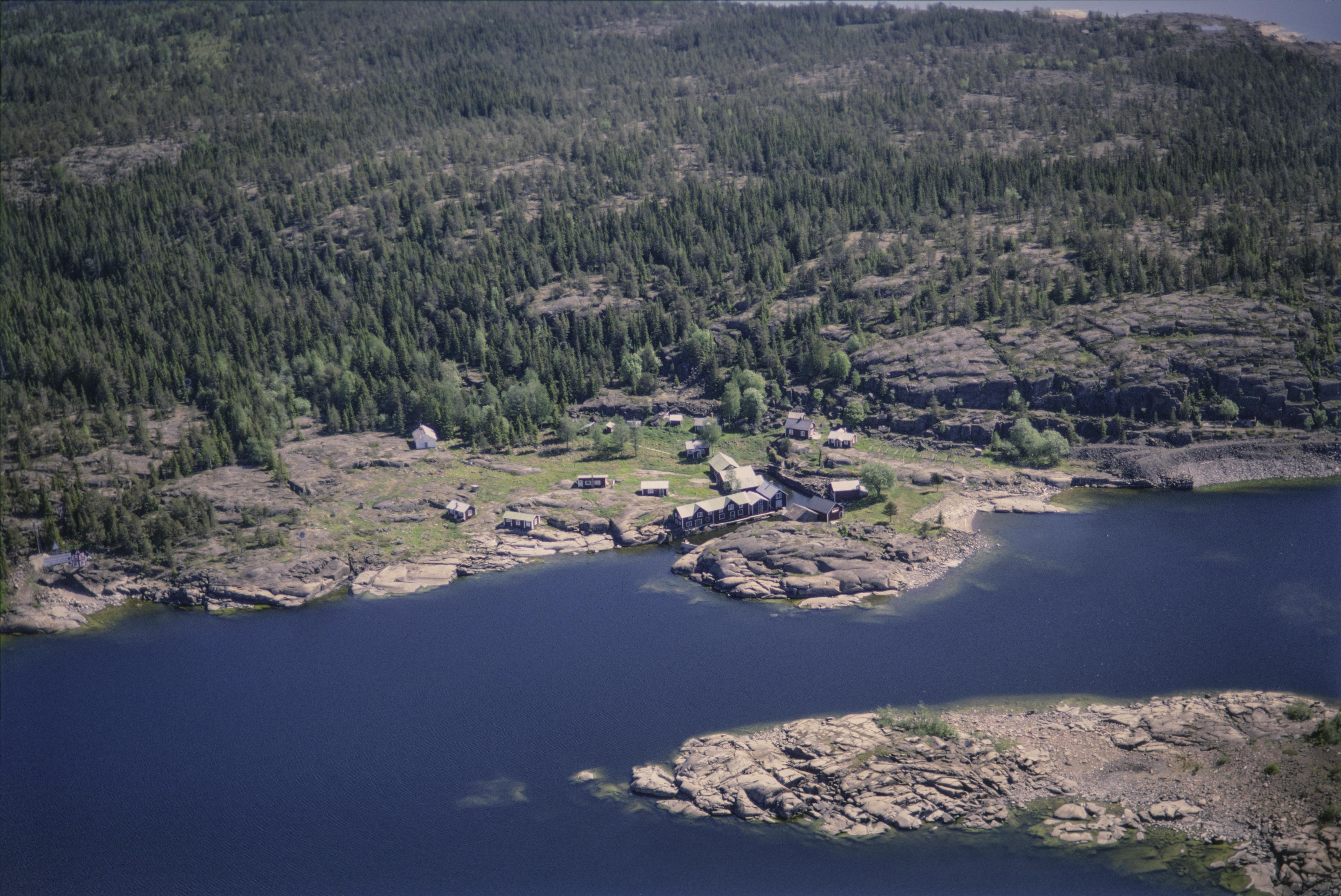 Beskrivning: Världsarvsområdet Höga kusten. Södra Ulvön i Ullångersfjärden. Fiskeläget Marviksgrunnan med Marviksgrunnans kapell (skrivs även Grunnans kapell). Vid stranden i bildens högra kant gruvområde RAÄnr Nätra 71:1. Nere till höger holmen Sönnerstbuten. Bilden är tagen mot (väderstreck): Ö