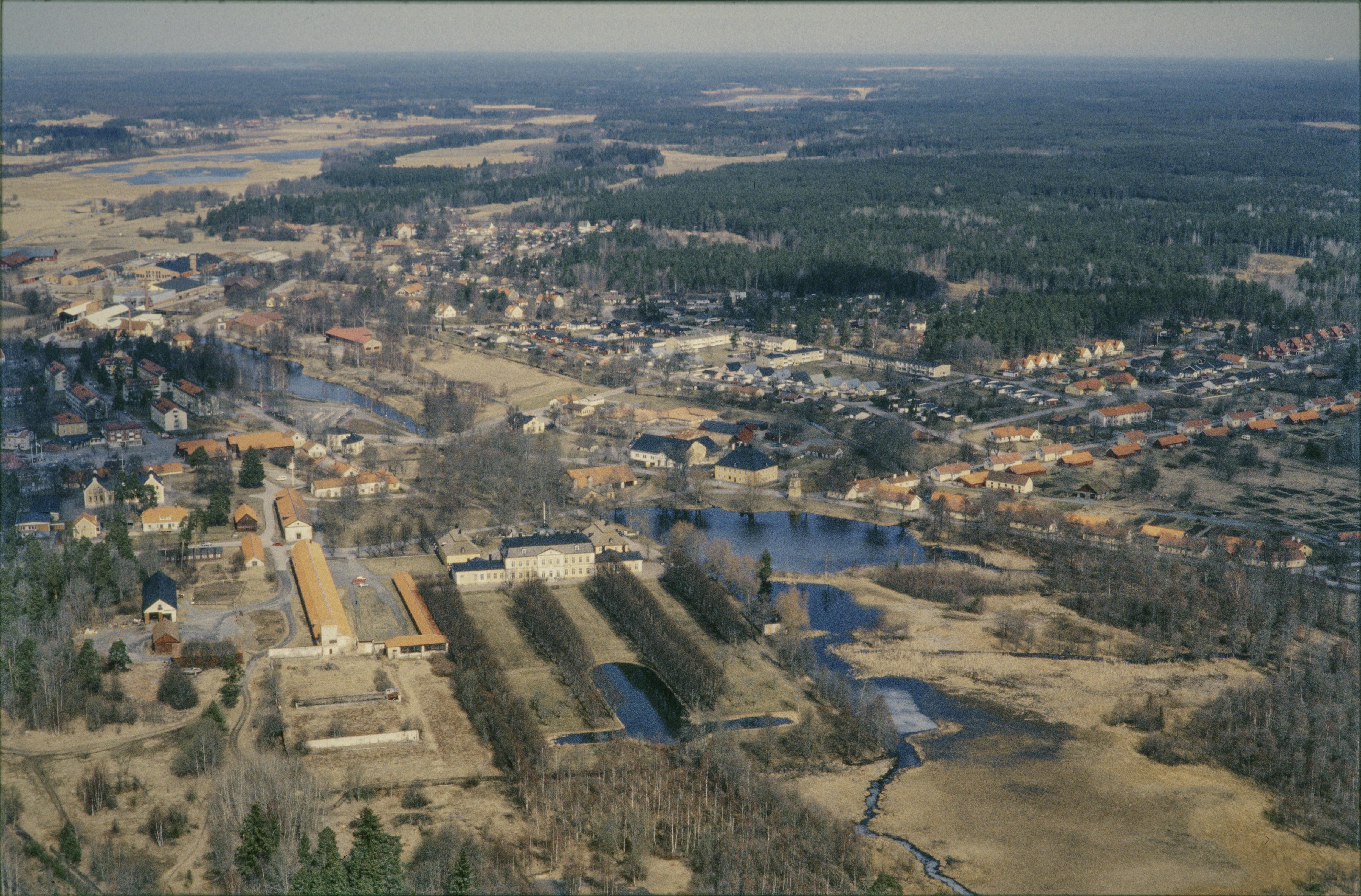 Beskrivning: Österbybruk vid Nerån och sjöarna Stordammen, Oppdammen, Sågdammen och Herrgårdsdammen. Bruksområde med herrgård och kyrka samt smedje-, kvarn-, hammar- och hyttlämningar m.m. RAÄnr Film 81:1. Bilden är tagen mot (väderstreck): N
