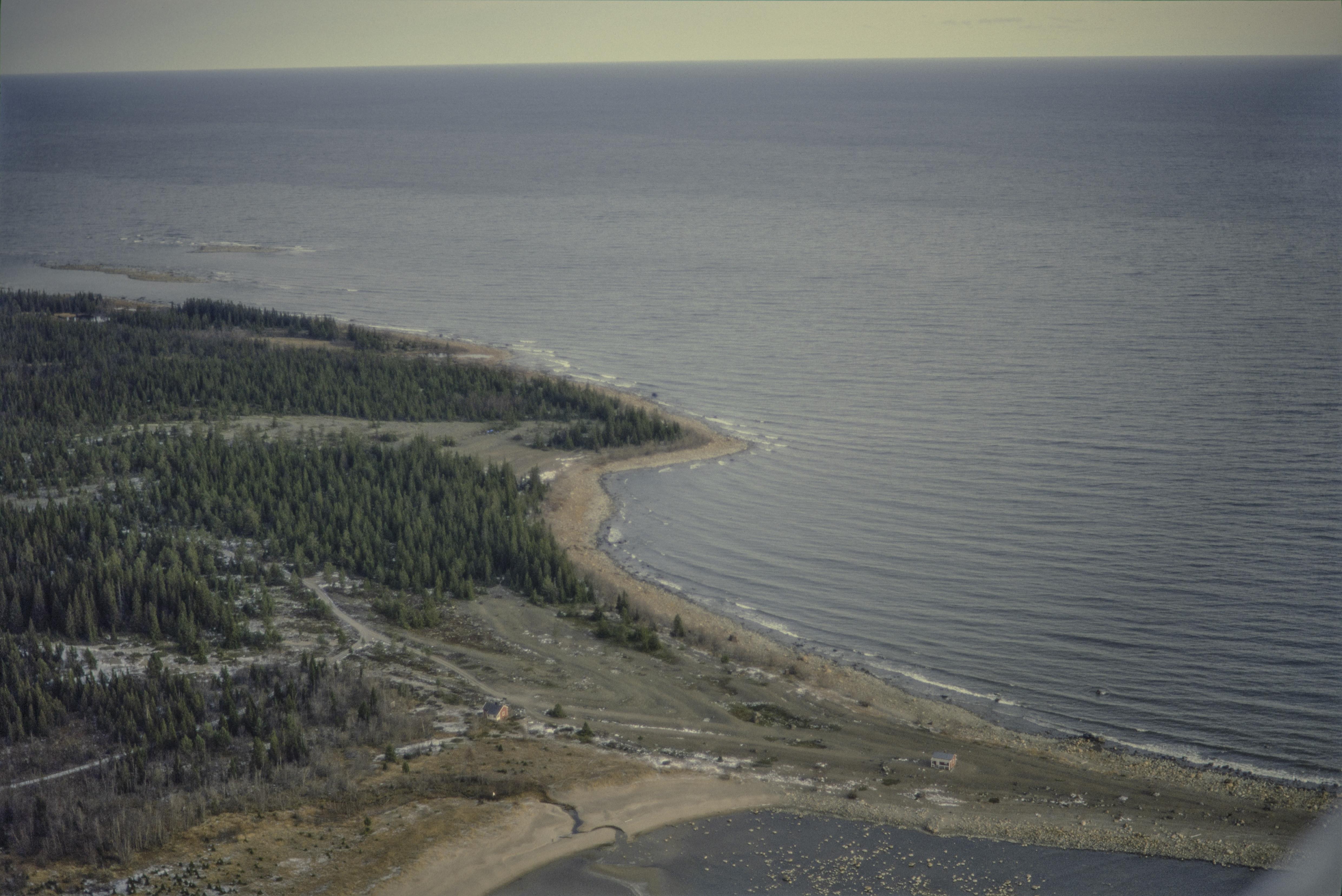 Beskrivning: Området Grundskatan i sydöstra delen av udden Bjuröklubb. I bildens vänstra kant Grundskataräften och ett fornlämningsområde med fiskeläge, gravfält och labyrint RAÄnr Lövånger 78:1-2. Bilden är tagen mot (väderstreck): NO