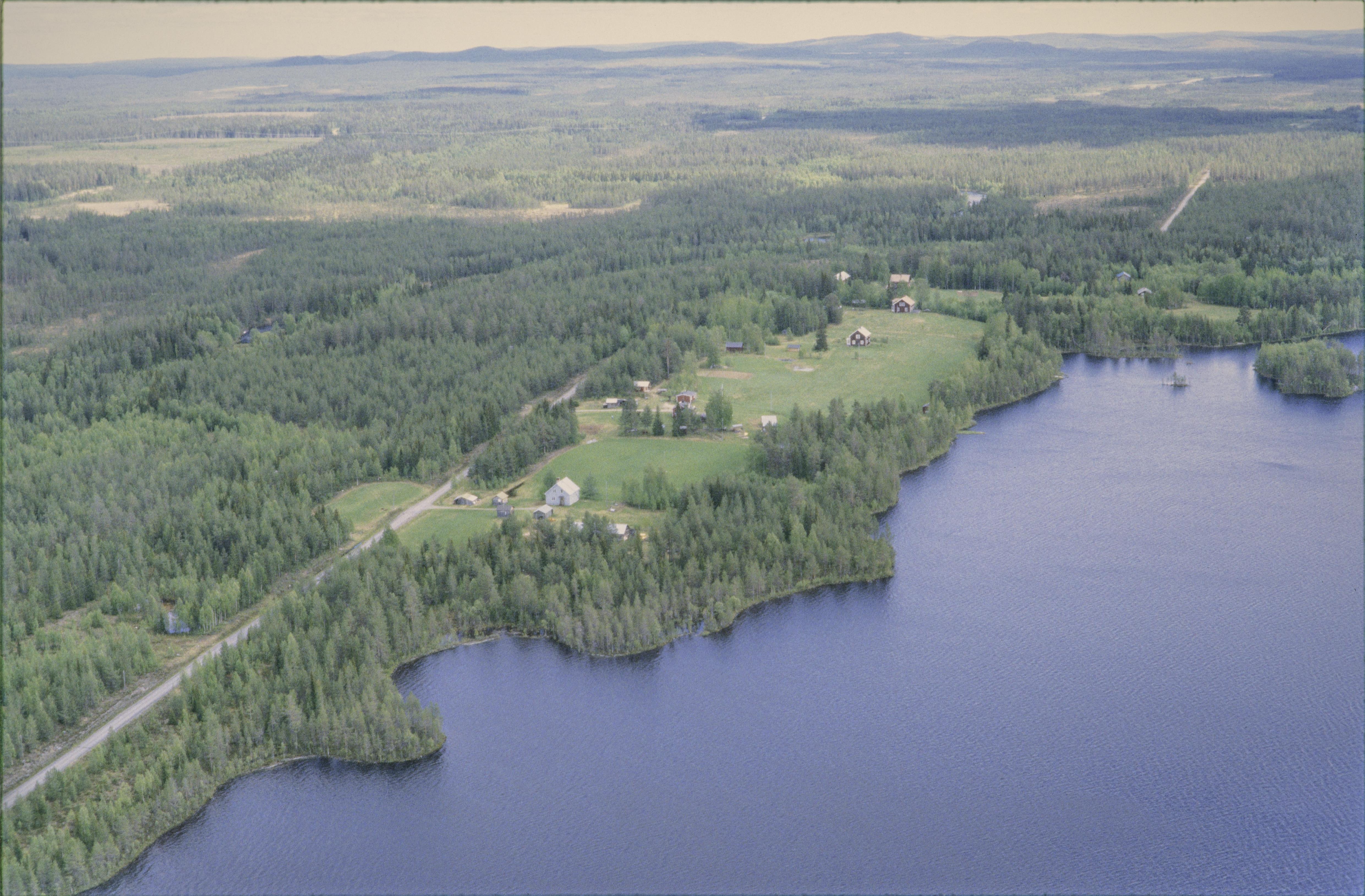 Beskrivning: Sjön Rörträsket. I bildens vänstra kant Petikån och Rörträsks silängars kulturreservat. Vid bildens mitt byn Rörträsk med fångstgropar RAÄnr Norsjö 37:1-3 och 38:1-2. Bilden är tagen mot (väderstreck): OSO