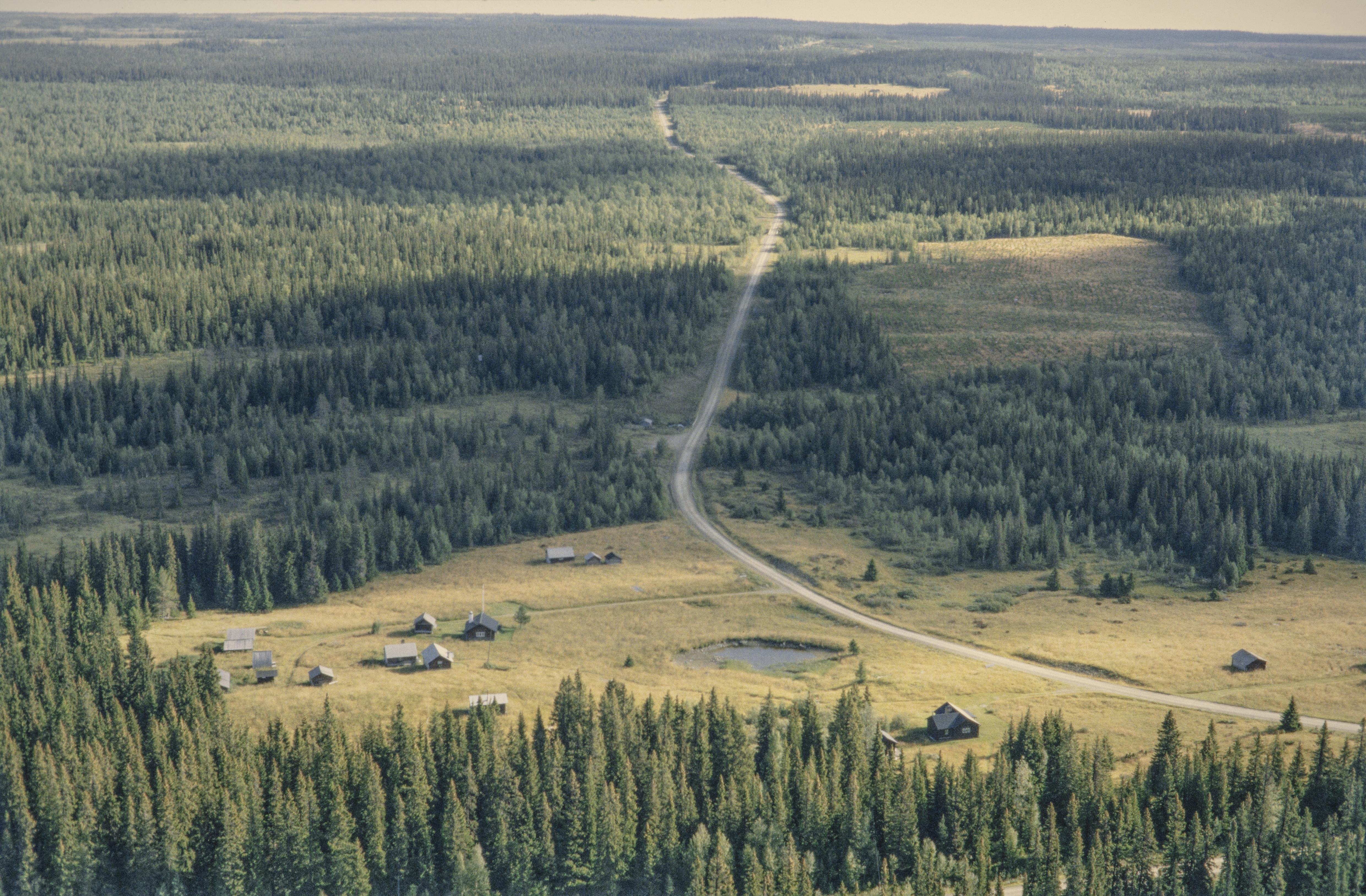 Beskrivning: Galåbodarna i Ovikfjällens fäbodområde, Fäbodområdet Svedjebodarna i bildens övre del. Bilden är tagen mot (väderstreck): ONO