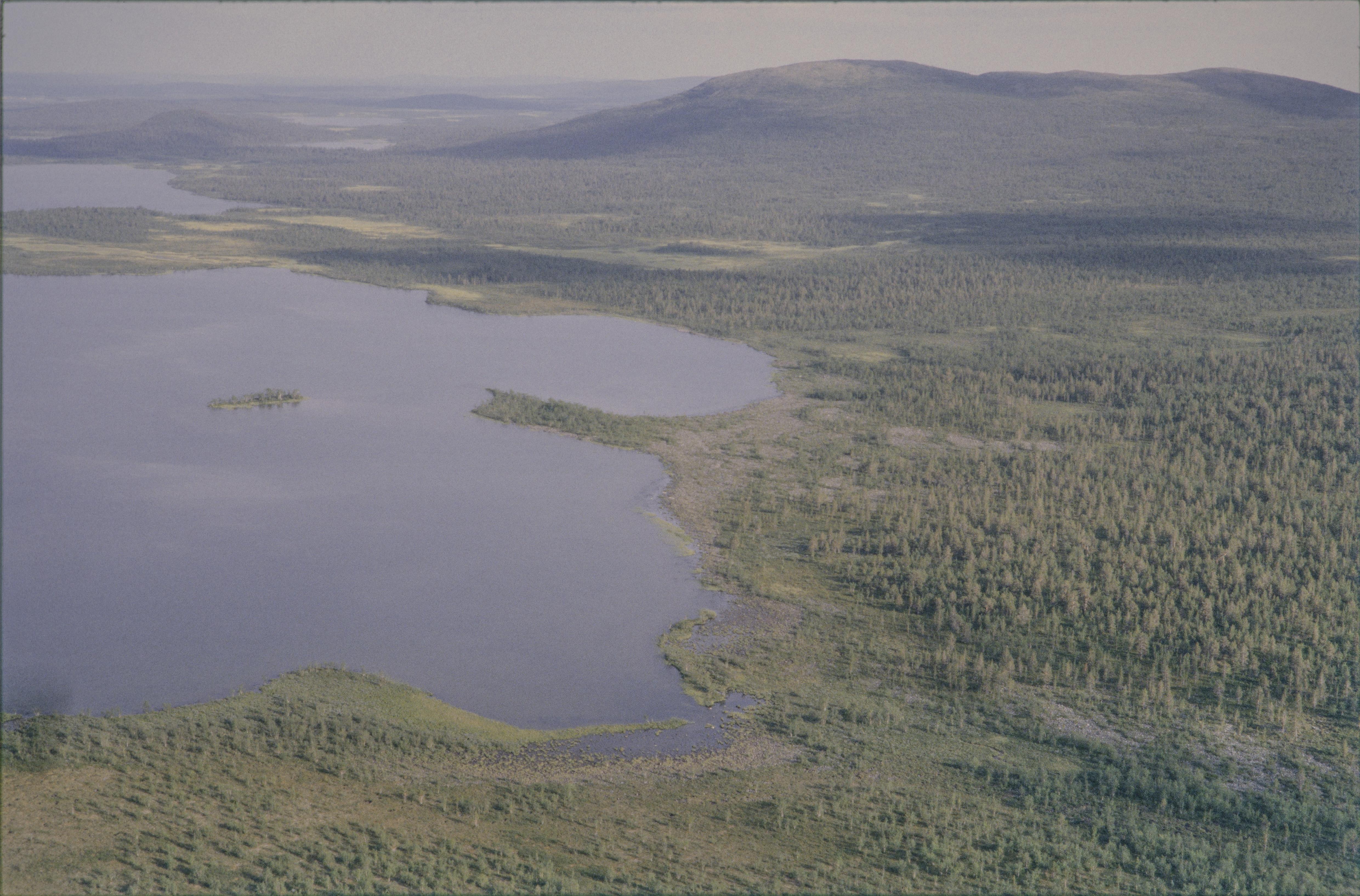 Beskrivning: Två samiska offerplatser i området Haltiosaari i Saivorova by vid sjön Isosaivo. På udden i bildens mitt offerplats RAÄnr Gällivare 73:1 och på holmen (till vänster om udden) offerplats Gällivare 97:1. Bilden är tagen mot (väderstreck): OSO