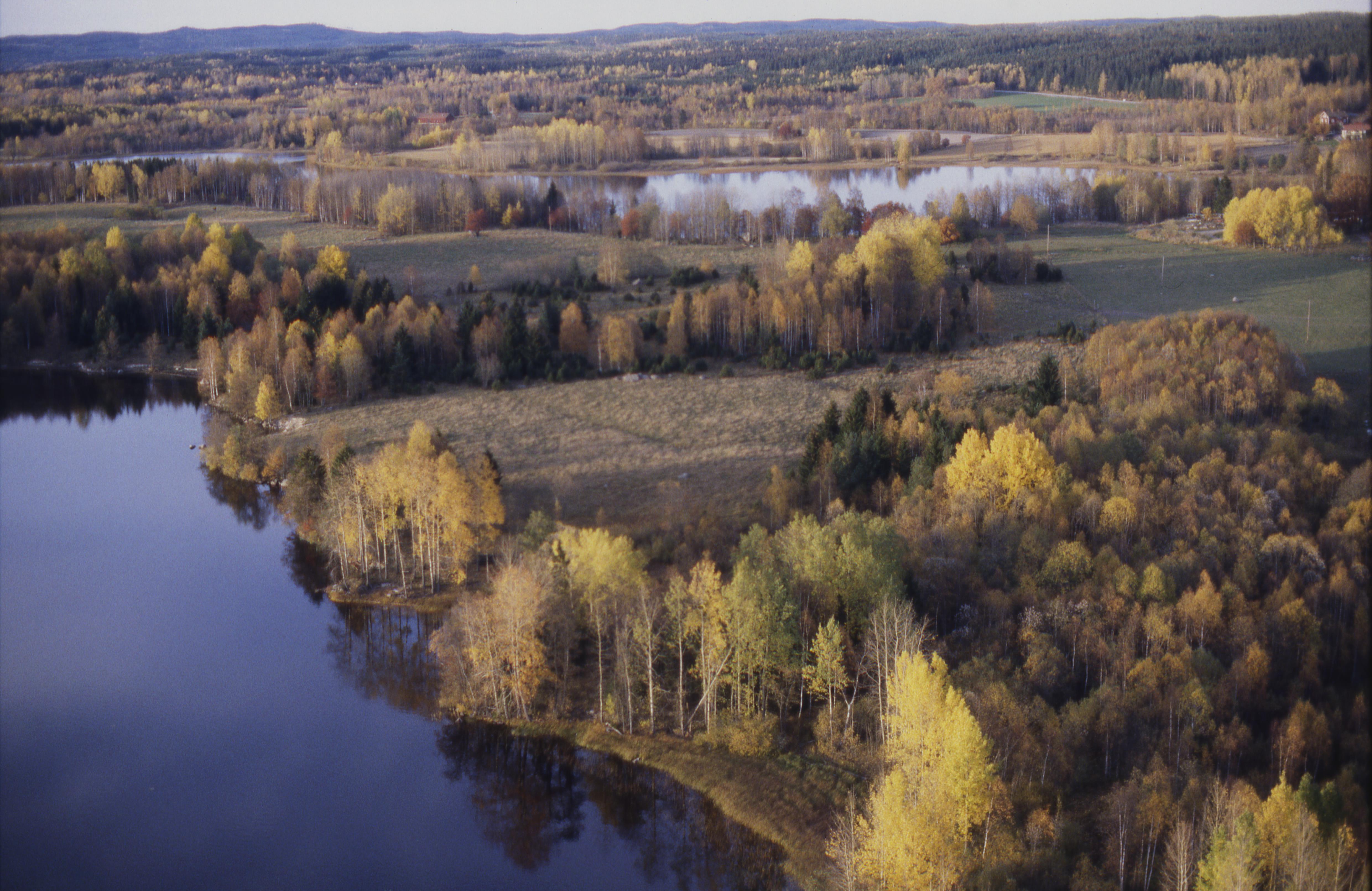 Beskrivning: Område väster om Södra Långviken på Långviksudde i sjön Övre Vättern. Uppe till höger Norra Långvikens hyttområde RAÄnr Skinnskatteberg 4:1 vid Långviken. Bilden är tagen mot (väderstreck): NV