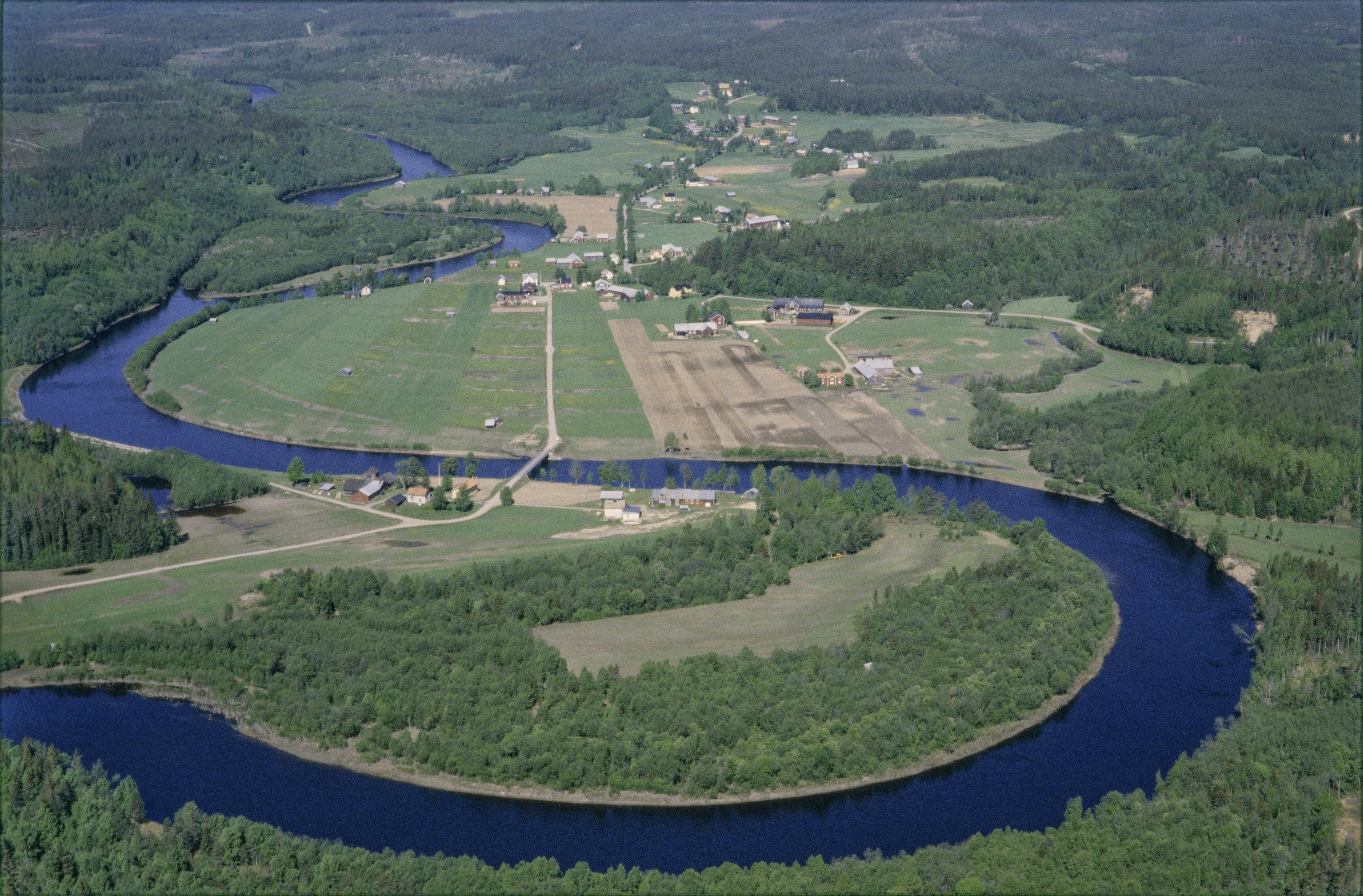 Beskrivning: Öreälvens dalgång vid området där Tvärbäcken möter Öreälven vid halvön Krången. I bildens mitt Hummelholms by öster om Hummelholms naturrreservat. Bilden är tagen mot (väderstreck): NV