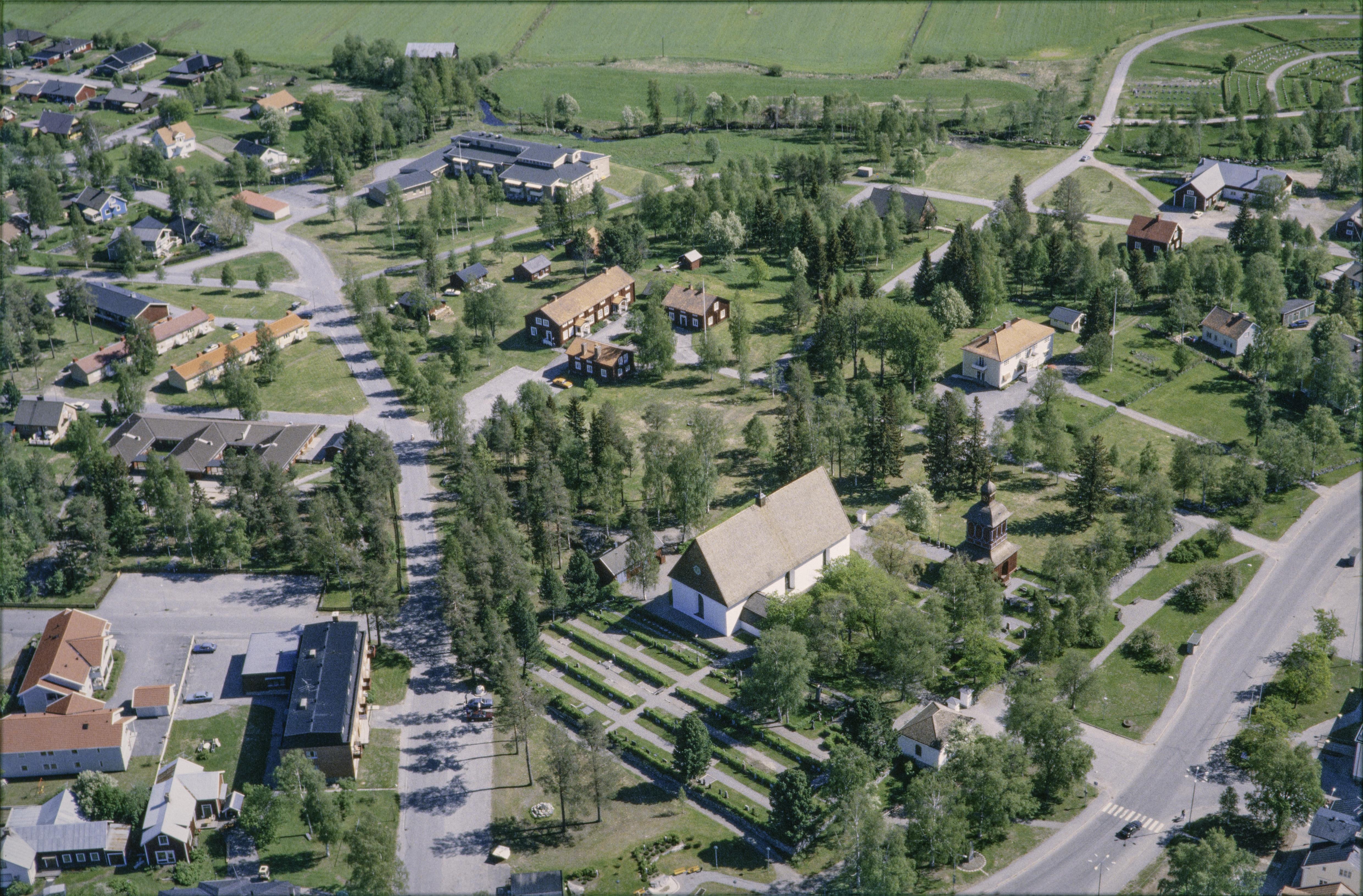 Beskrivning: Nordmalings tätort och kyrkby. Nordmalings kyrka och prästgård i medeltida tomt RAÄnr Nordmaling 996. Bilden är tagen mot (väderstreck): ONO