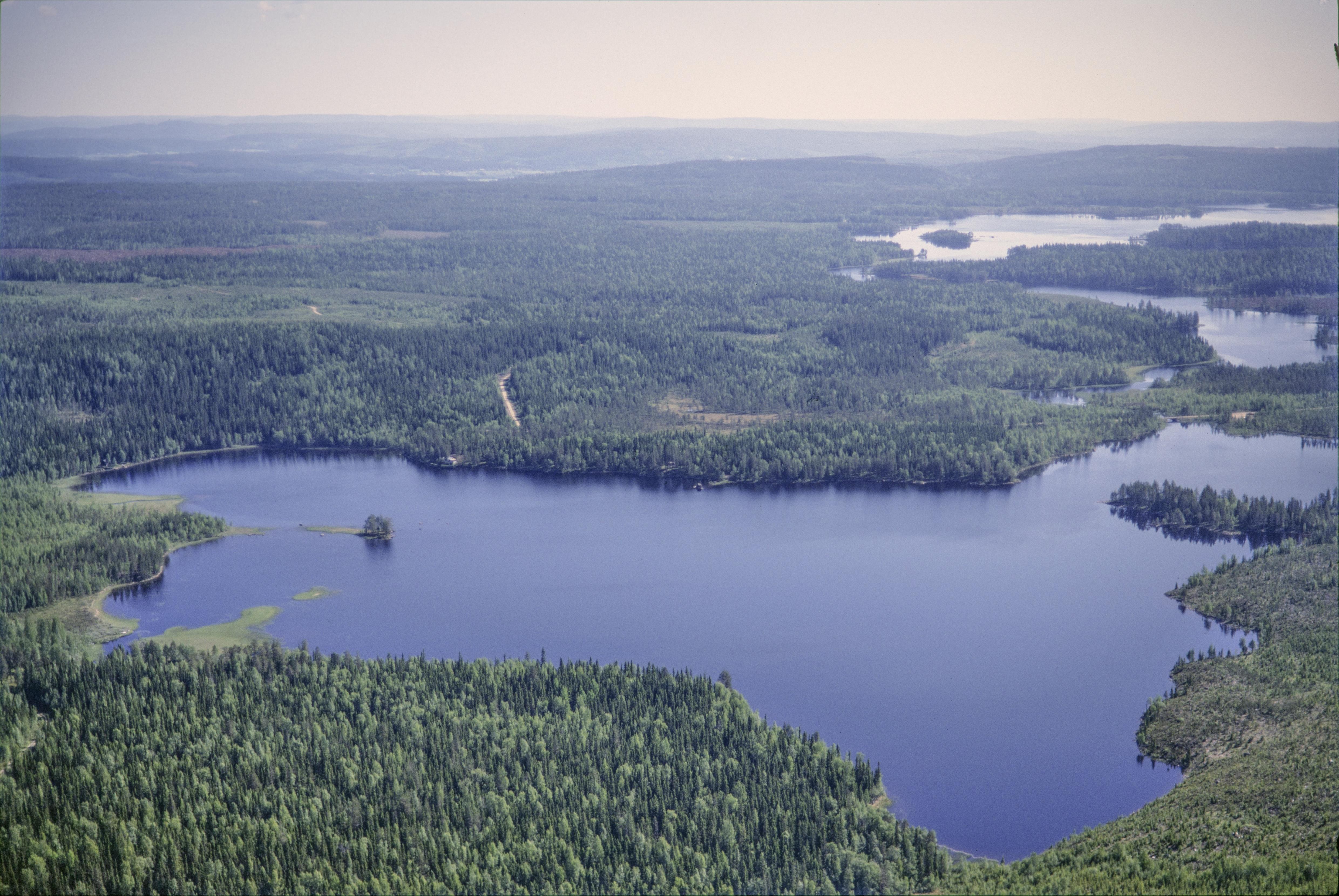 Beskrivning: Beskrivning: Stor-Åbodsjön. Till vänster om bildens mitt en liten holme med boplats RAÄnr Sidensjö 5:1. I strandkanten vid bildens mitt en sten (ett flyttblock) i vattnet med hällmålningar RAÄnr Sidensjö 1:1. Bilden är tagen mot (väderstreck): Ö Fotosyfte: Flygbildsdokumentation