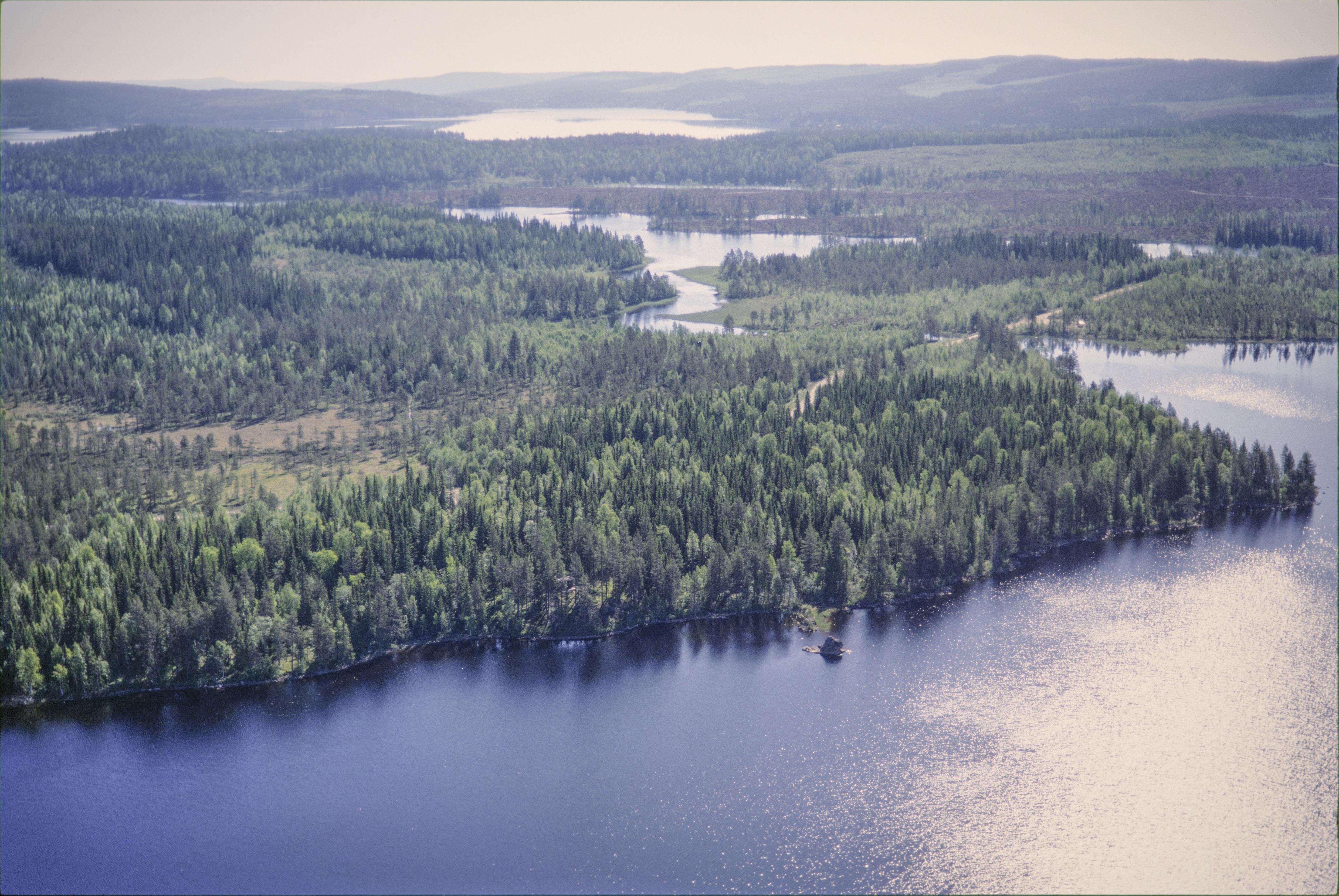 Beskrivning: Beskrivning: Stor-Åbodsjön. Till höger under bildens mitt en sten (ett flyttblock) i vattnet med hällmålningar RAÄnr Sidensjö 1:1. Bilden är tagen mot (väderstreck): OSO Fotosyfte: Flygbildsdokumentation