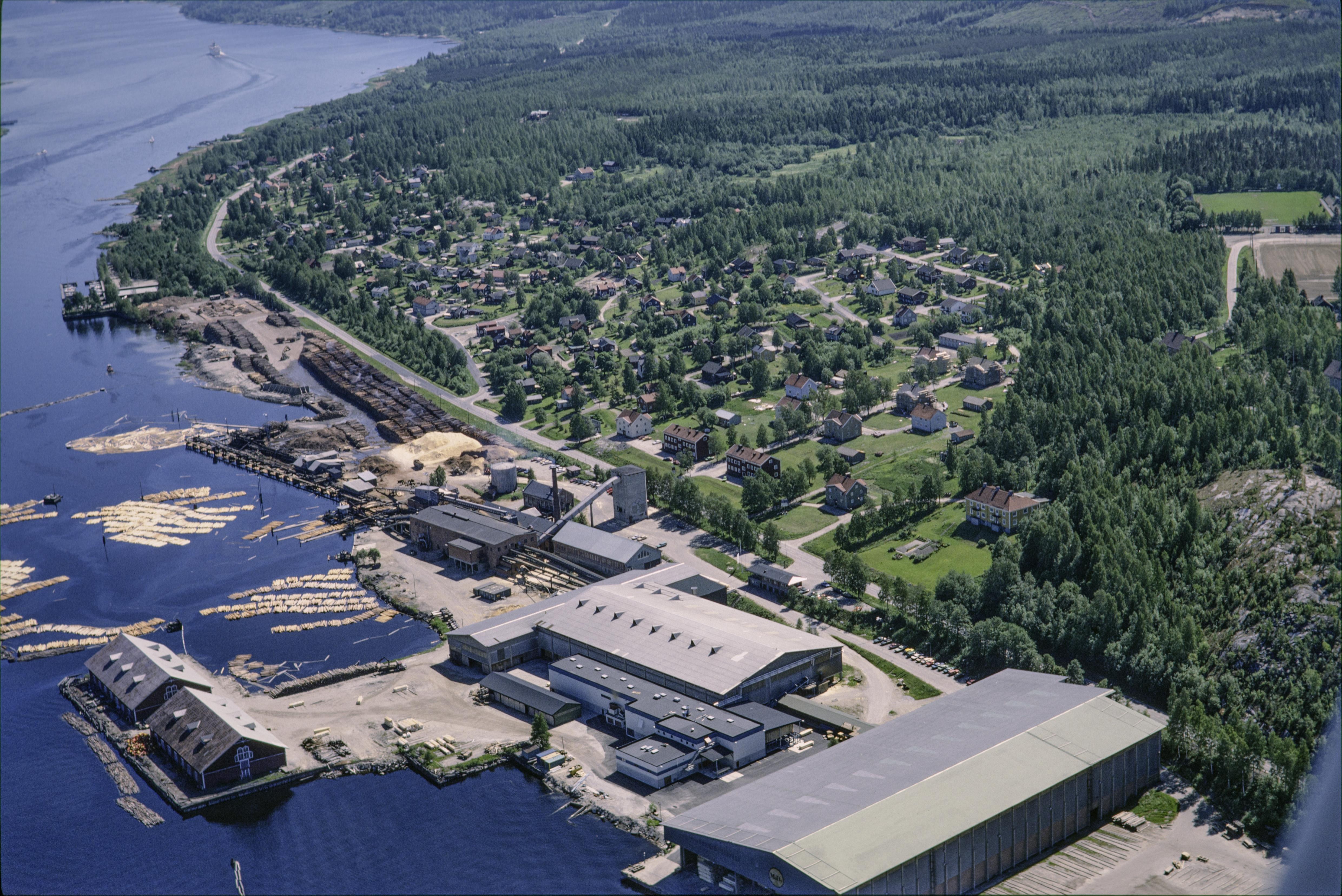 Beskrivning: Höga kustens världsarvsområde. Domsjö sågverkssamhälle vid Örnsköldsviksfjärden. Vid hamnen lastageplats RAÄnr Själevad 190:1. Bilden är tagen mot (väderstreck): OSO