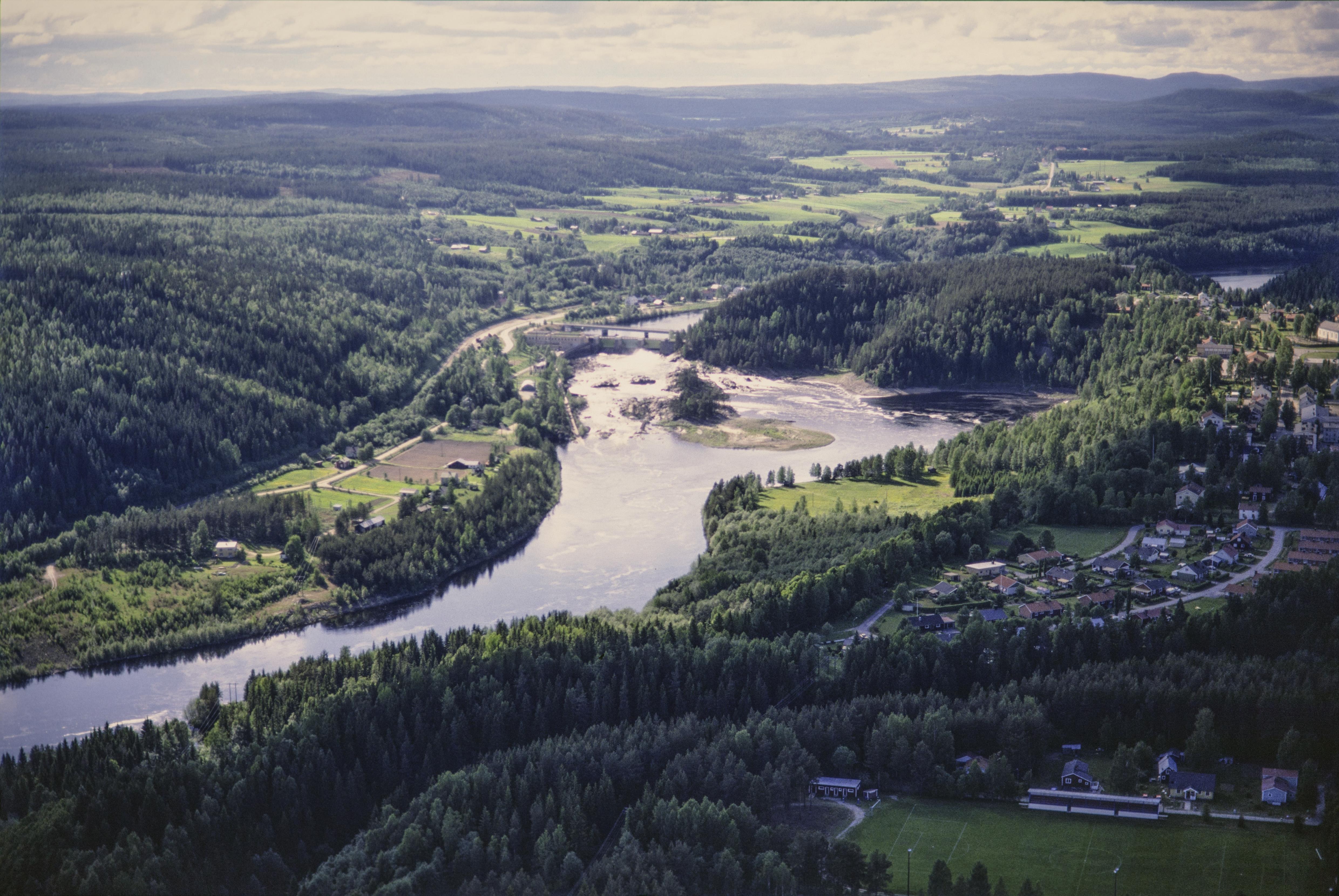 Beskrivning: Ångermanälvens dalgång. Över bildens mitt Nämforsen med ett stort hällristningskomplex RAÄnr Ådals-Liden 193:1, samt boplatser från sten- och bronsålder. Boplats RAÄnr Ådals-Liden 158:1 vid tätorten Näsåker till höger under bildens mitt. Uppe till höger Ådals-Lidens kyrkby. Bilden är tagen mot (väderstreck): V