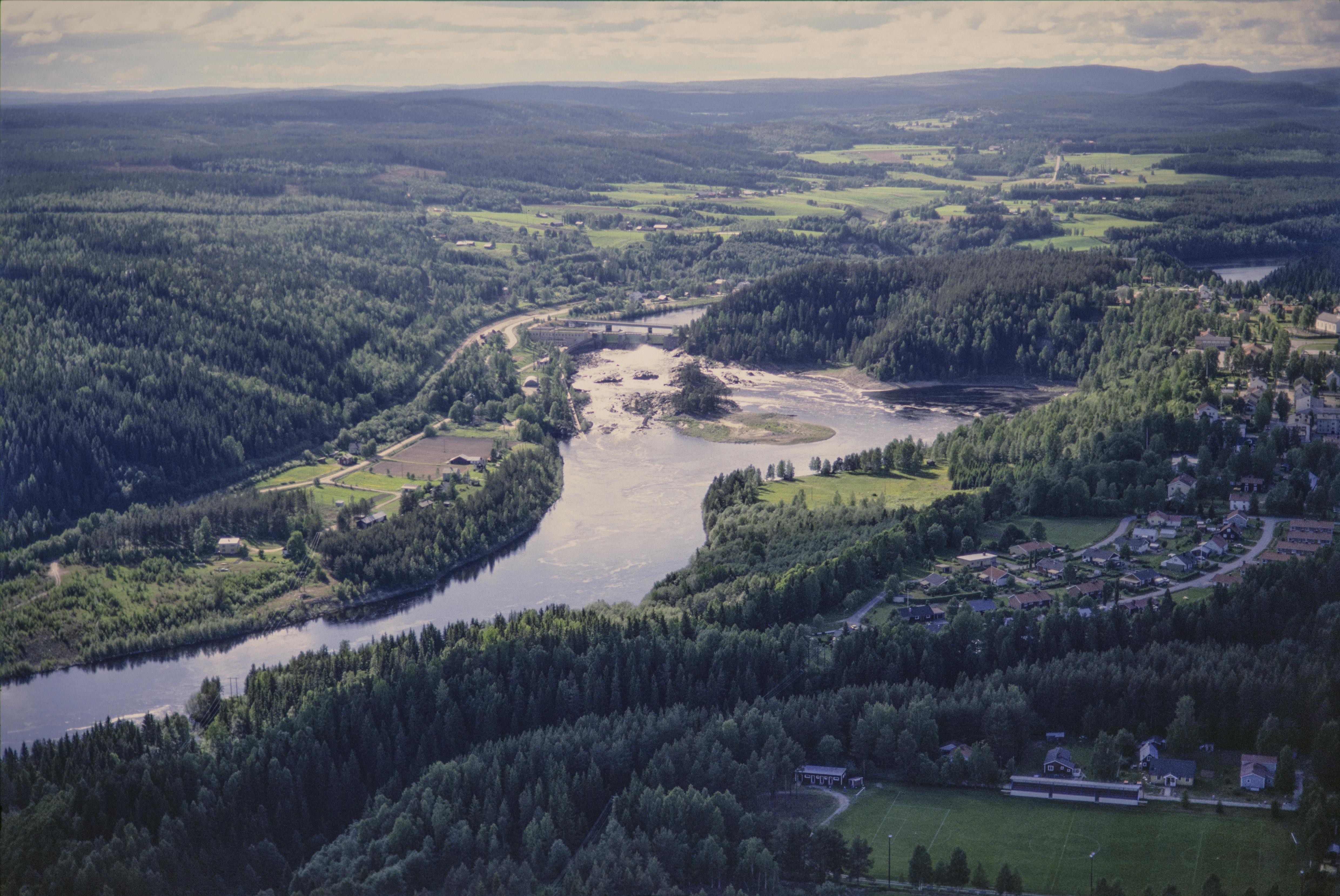 Beskrivning: Ångermanälvens dalgång. Över bildens mitt Nämforsen med ett stort hällristningskomplex RAÄnr Ådals-Liden 193:1, samt boplatser från sten- och bronsålder. Boplats RAÄnr Ådals-Liden 158:1 vid tätorten Näsåker till höger under bildens mitt. Uppe till höger Ådals-Lidens kyrkby. Bilden är tagen mot (väderstreck): V