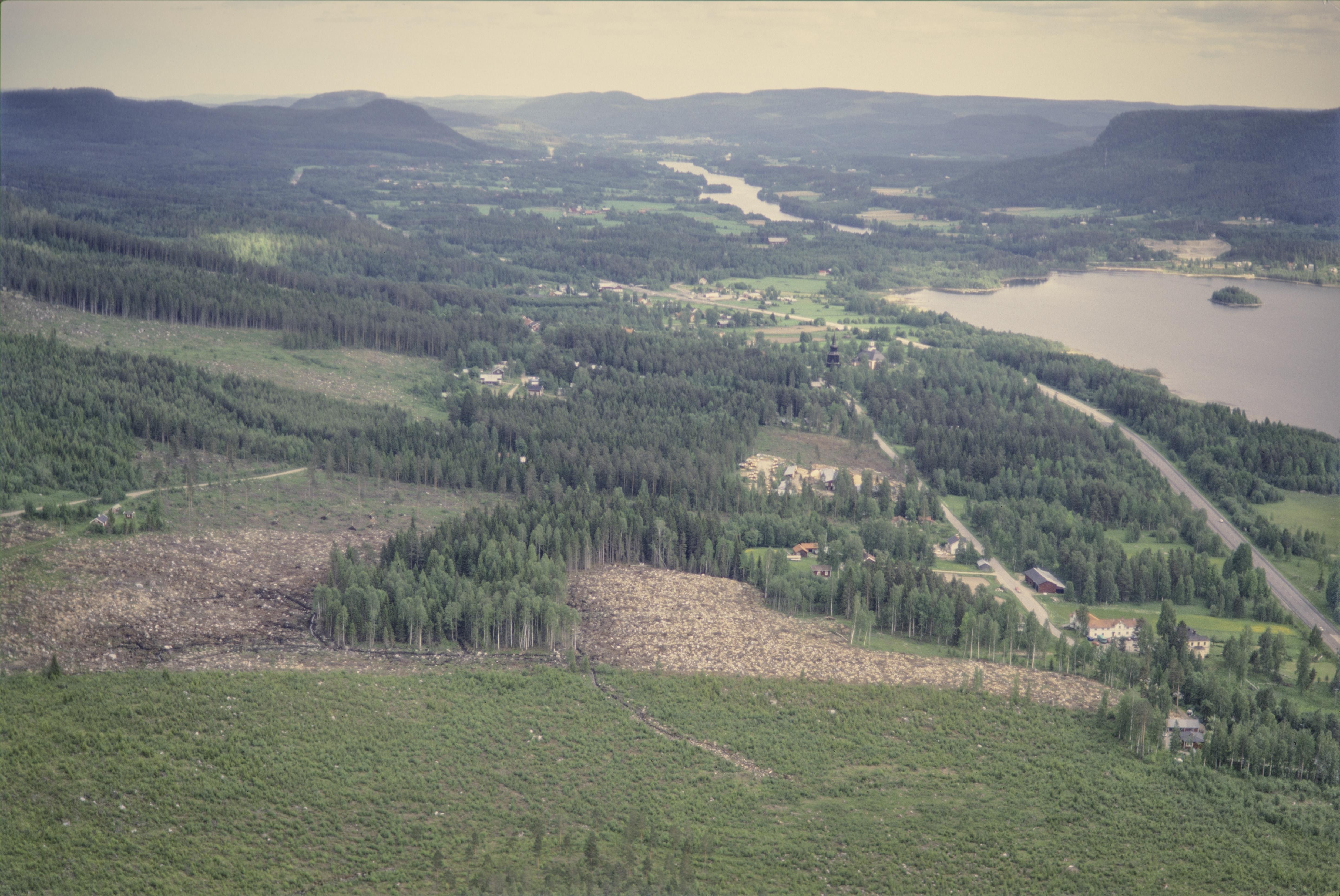 Beskrivning: Ån Ljungans dalgång vid Borgsjön. Till vänster om bildens mitt Sankt Olofs källa RAÄnr Borgsjö 14:1-3 vid pilgrimleden Sankt Olavsleden. Över bildens mitt Borgsjö kyrkby. Bilden är tagen mot (väderstreck): SO