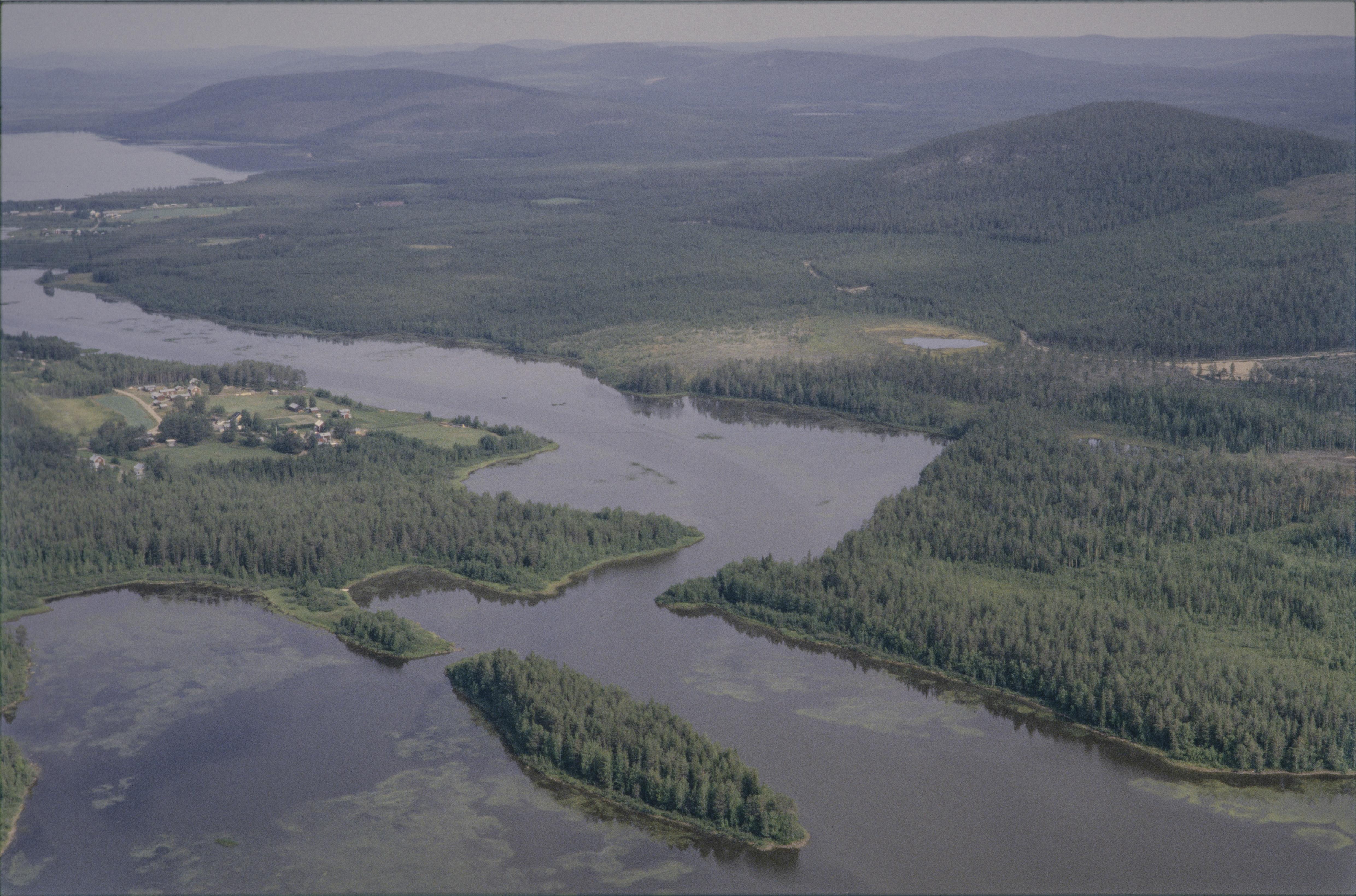 Beskrivning: Sjöområdet Yttre Lansjärv sydost i sjön Övre Lansjärv. Under bildens mitt Lillsundet med boplats RAÄnr Överkalix 19:1. Till vänster i bildens övre del skymtar Övre Lansjärv. Byn Lillsundet till vänster om bildens mitt. Bilden är tagen mot (väderstreck): NNO