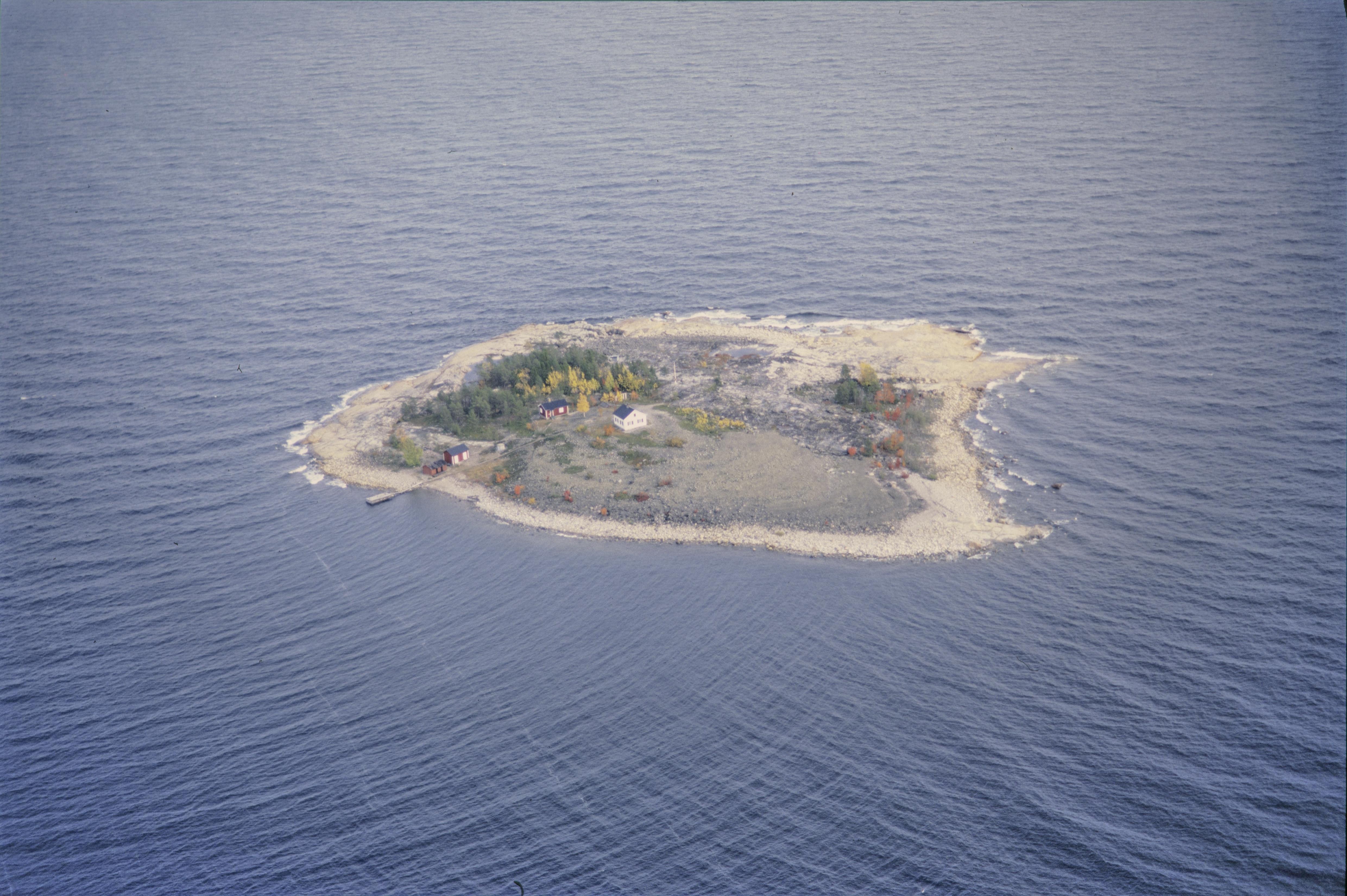 Beskrivning: Holmen Hamnskäret (Lotsskäret) öster om Romelsön. På Hamnskäret en f.d. lotsplats med några små byggnader. Bilden är tagen mot (väderstreck): NO