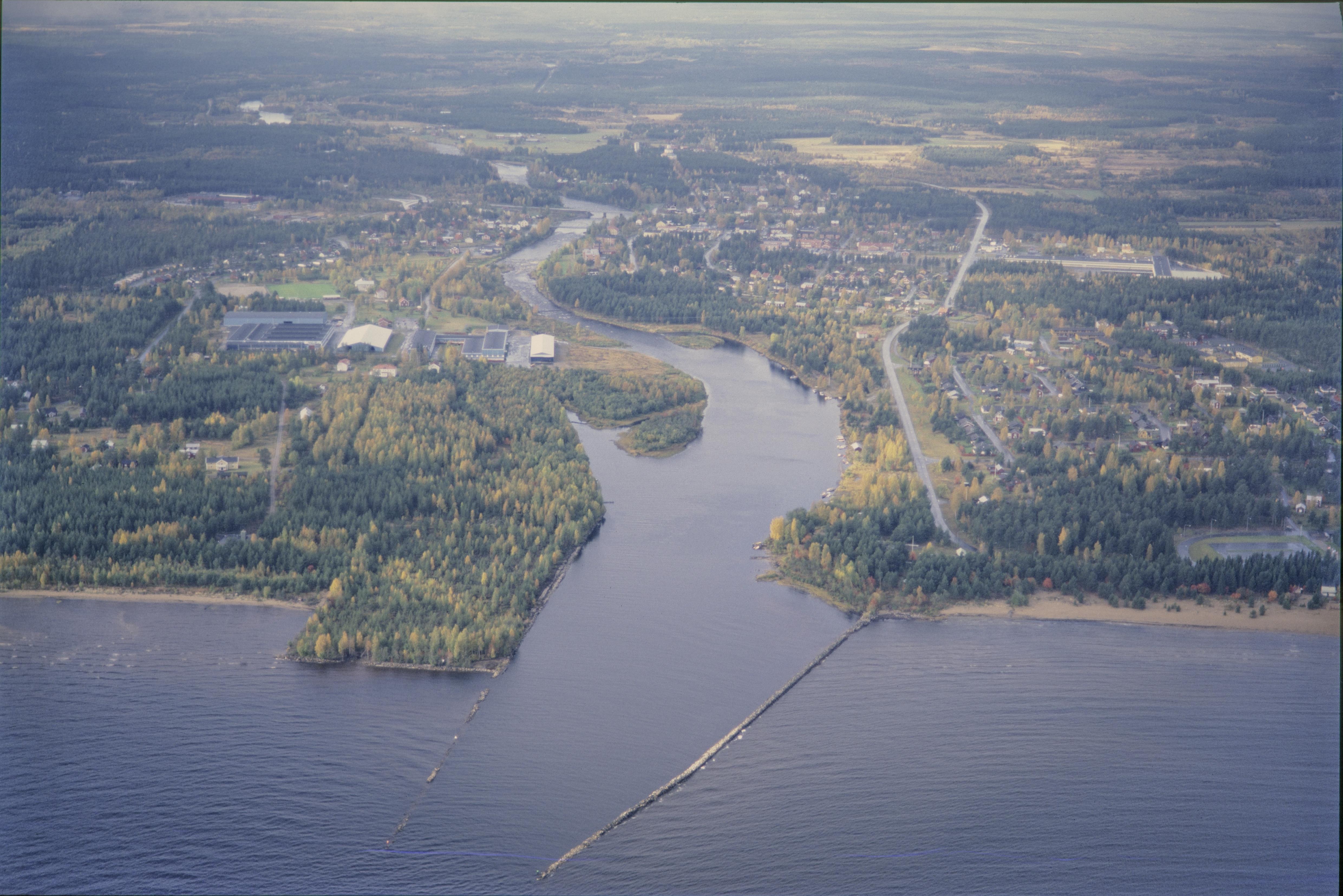 Beskrivning: Byske tätort och kyrkby. I bildens nedre del Byskeälvens mynning i Byskefjärden. Till vänster om älvmynningen två småindustriområden, RAÄnr Byske 142:1 och 930:1. Bilden är tagen mot (väderstreck): VNV