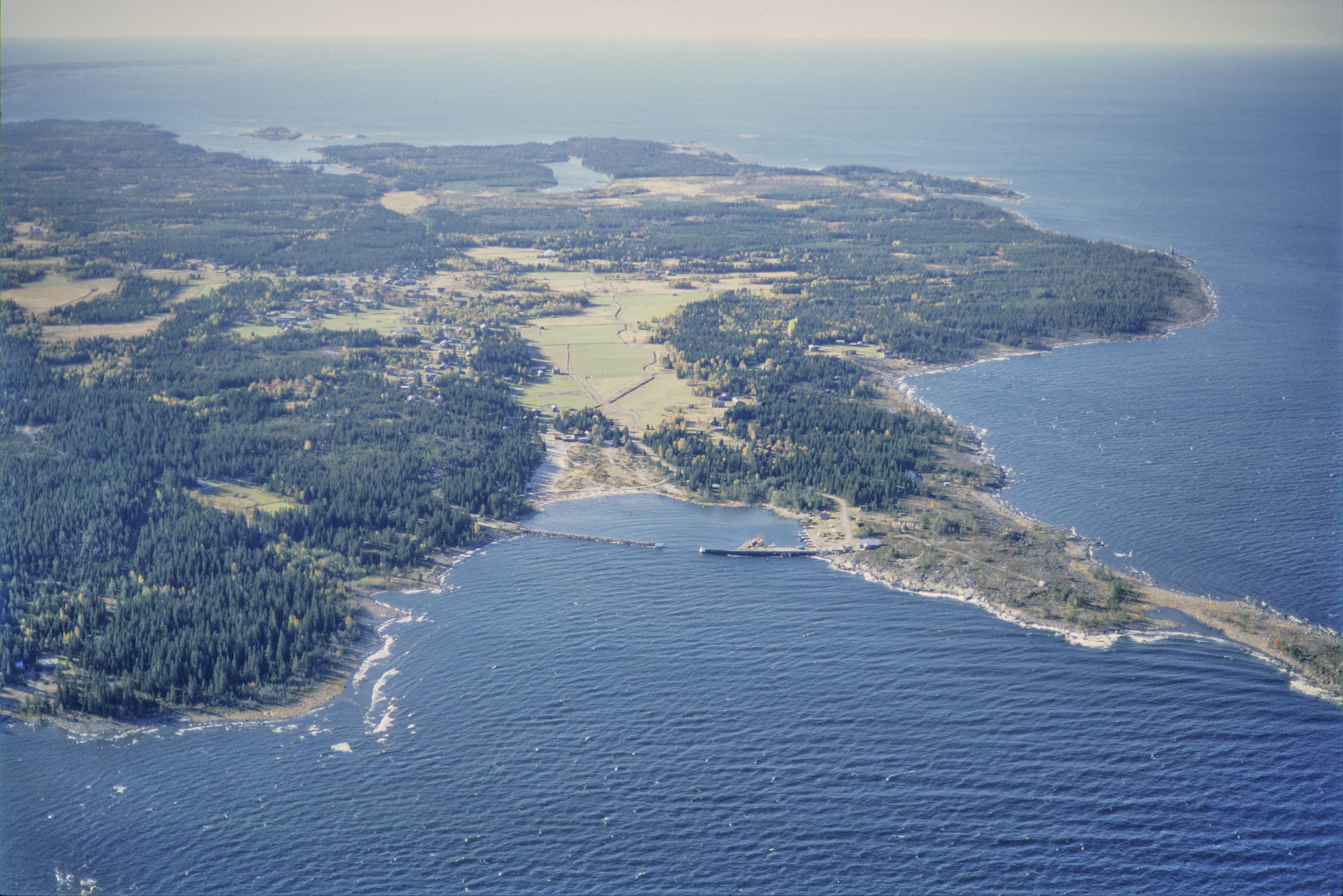 Beskrivning: Anmärkning (övrig): Riksintresse-nr/namn: AC8 - Holmöns by. Socken: Holmön. Motivering: Skärgårdsby och odlingslandskap med medeltida kontinuitet, baserad på jordbruk i kombination med fiske och jakt. - Uttryck för riksintresset: Särpräglad och välbevarad ålderdomlig bebyggelse i gamla gårdslägen på åsryggar i ett öppet och välhävdat odlingslandskap. [Texten uppdaterat av Riksantikvarieämbetet våren 2013.] Beskrivning: Holmöns nordvästra del. Holmöns kyrkby vid bildens mitt. I byn lämningar efter fiskeläge RAÄnr Holmön 11:1. Holmön ingår i ögruppen Holmöarna i sundet Norra Kvarken. Bilden är tagen mot (väderstreck): SSV Fotosyfte: Flygbildsdokumentation