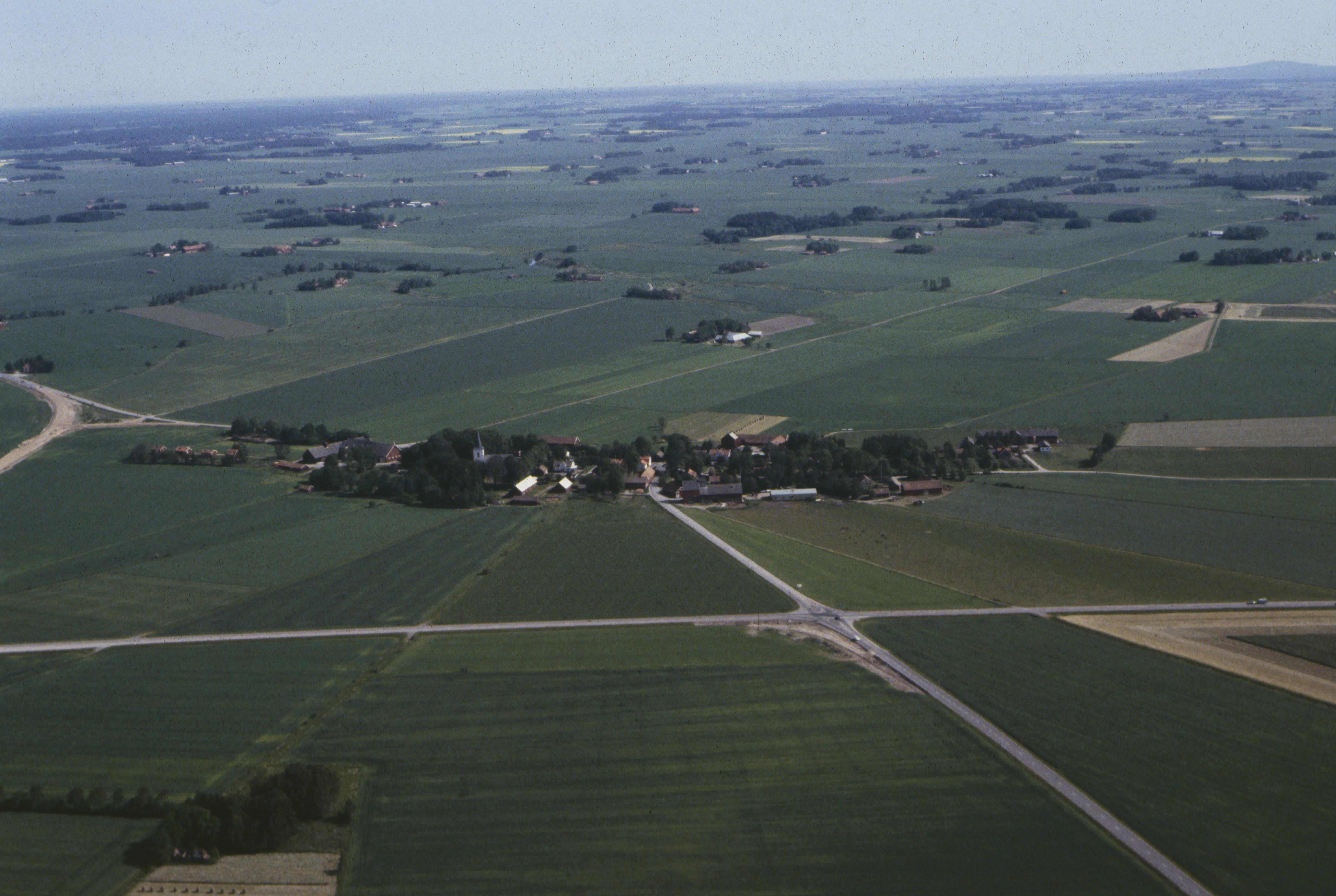 Beskrivning: Longs kyrka och kyrkby. Bilden är tagen mot (väderstreck): NO