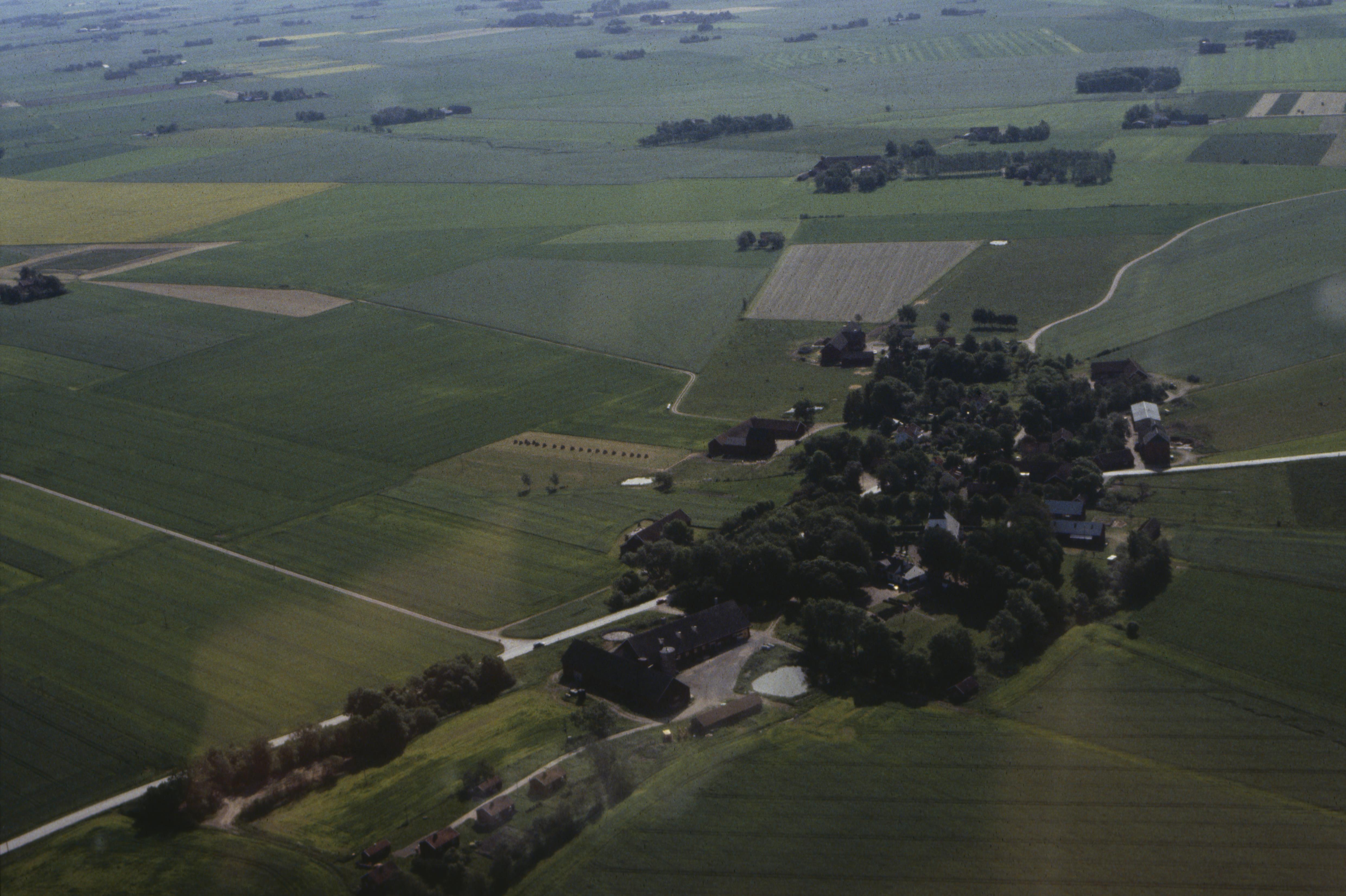 Beskrivning: Longs kyrka och kyrkby. Bilden är tagen mot (väderstreck): Ö