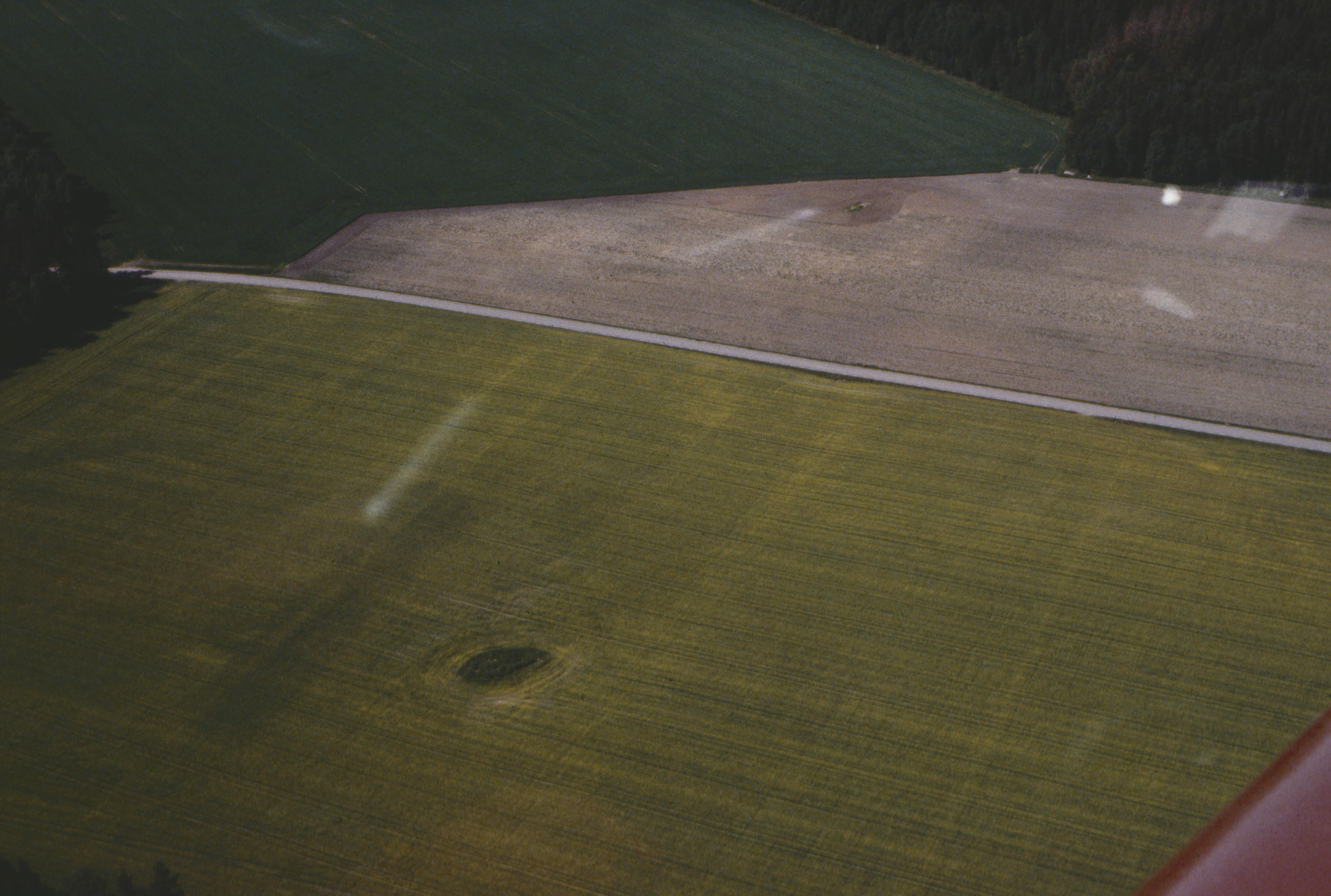 Beskrivning: Ospecificerad plats. Åker med fornlämning (?). Möjligen i området vid Larvs kyrka.
