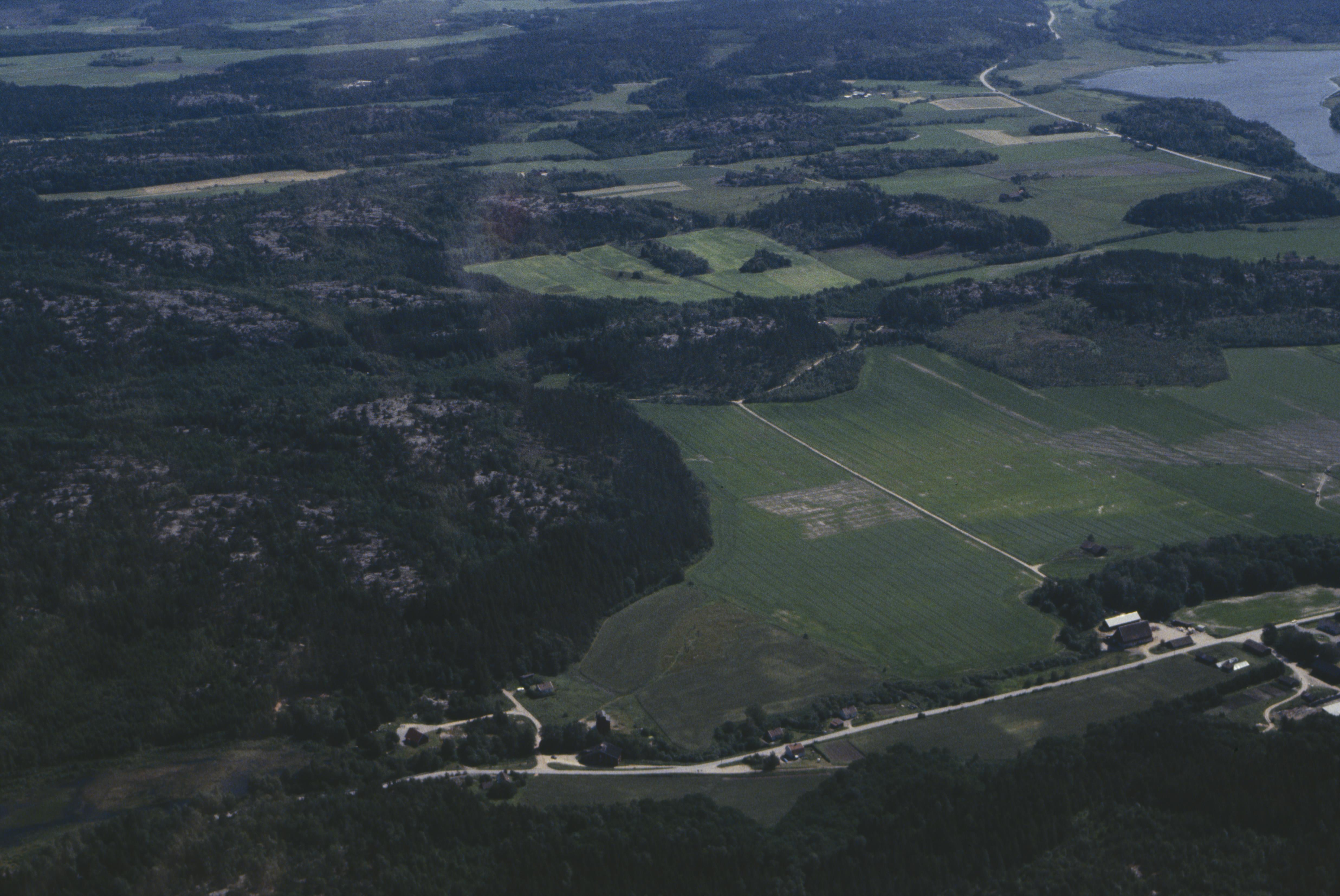 Beskrivning: Blomsholms by och herrgård i bildens nedre del. Skeppssättning RAÄnr Skee 343:1 till höger under bildens mitt. I bildens övre del byarna Rogsta och Hee m.fl. Bilden är tagen mot (väderstreck): SO