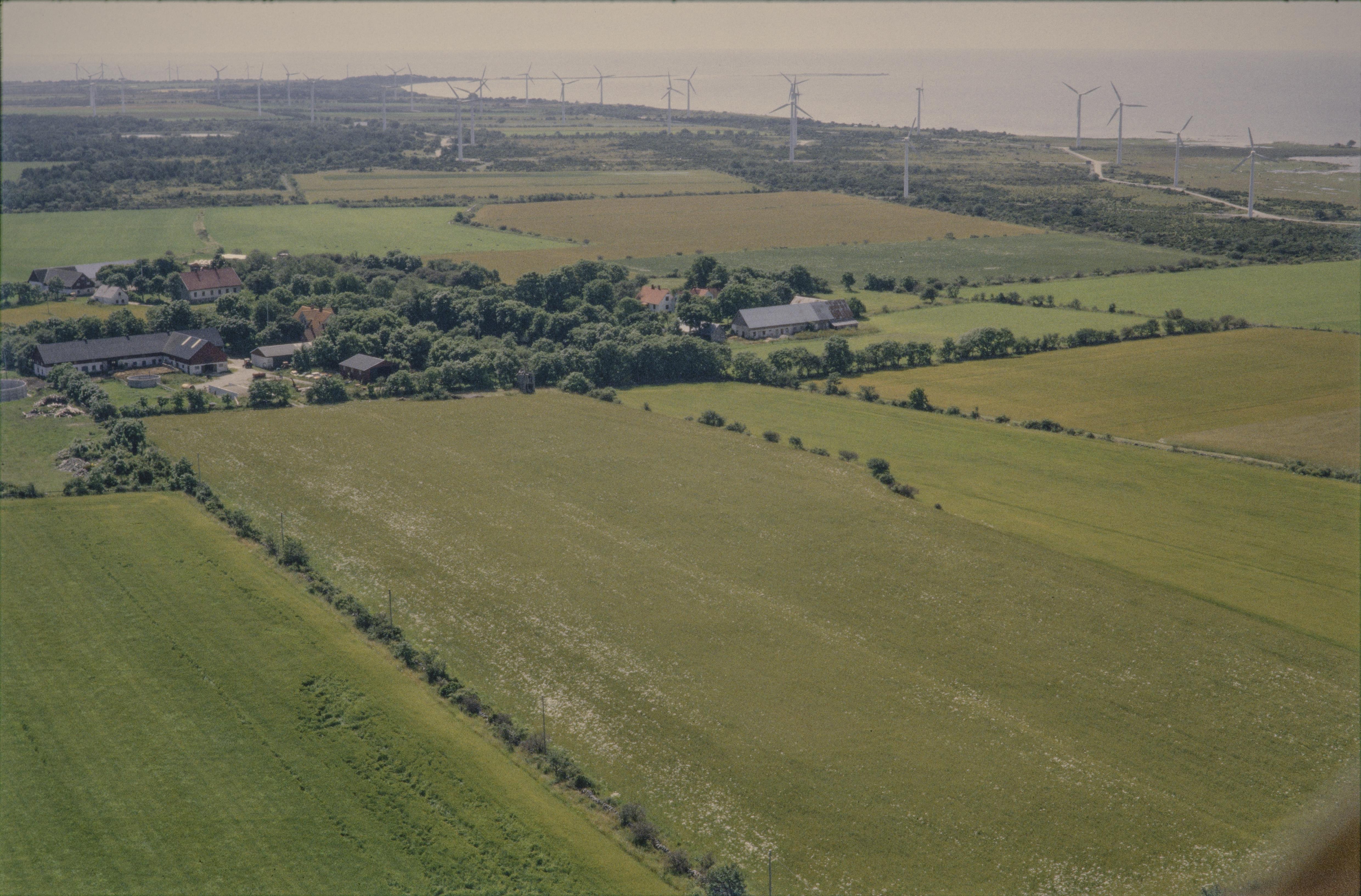 Beskrivning: I bildens nedre del område sydväst om Näs kyrkby på Näsudden. Gården Stora Siglajvs uppe till vänster. Nere till höger husgrund RAÄnr Näs 106. I bildens övre del område med vindkraftverk. Bilden är tagen mot (väderstreck): SV
