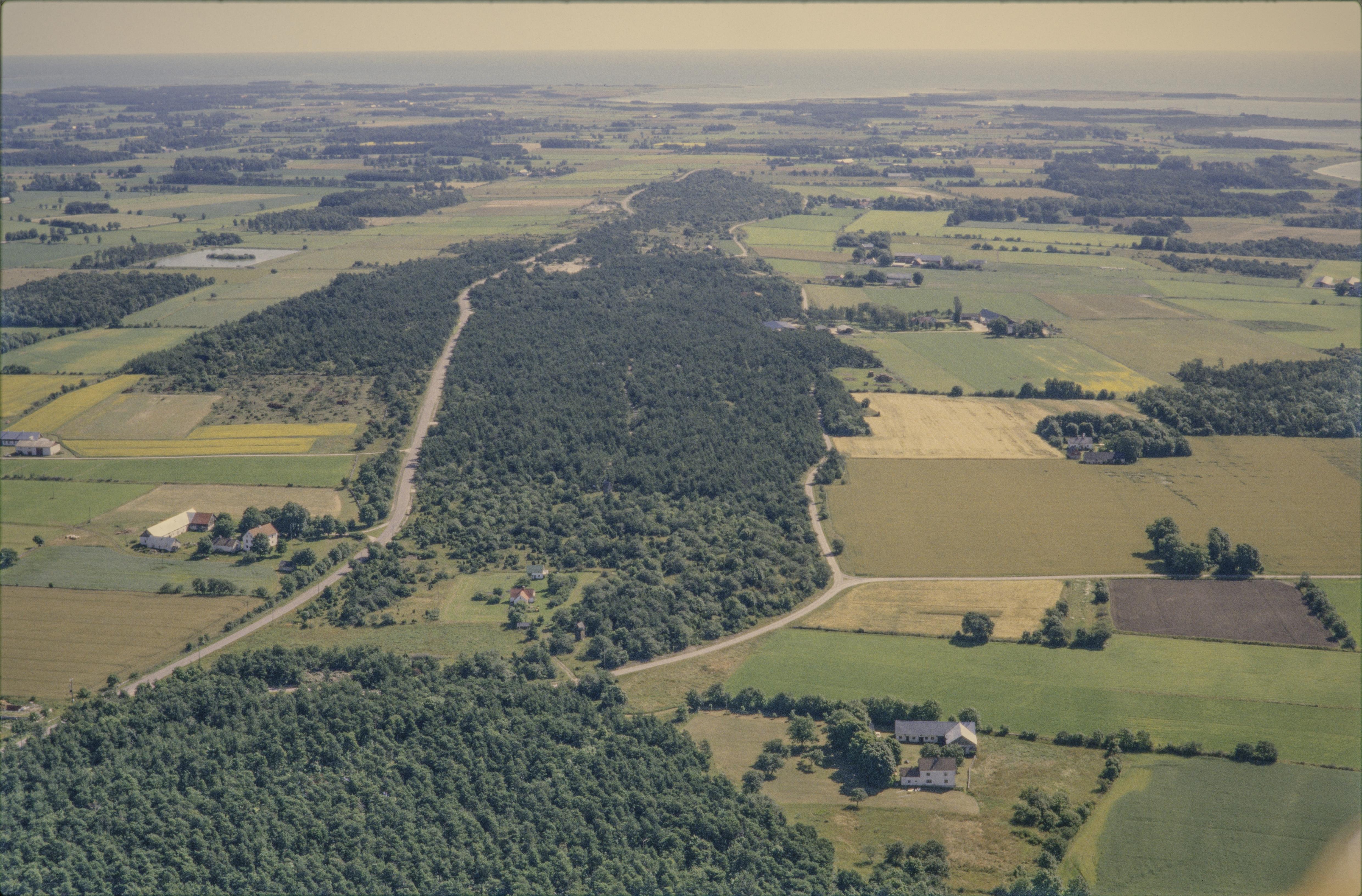 Beskrivning: Ammunde by i bildens nedre del. Under bildens mitt område med stensättningar RAÄnr Burs 31:1-3. Över bildens mitt gränsen mot Närs socken. Närkholmen (skrivs även Närsholmen) i bildens övre del. Bilden är tagen mot (väderstreck): Ö