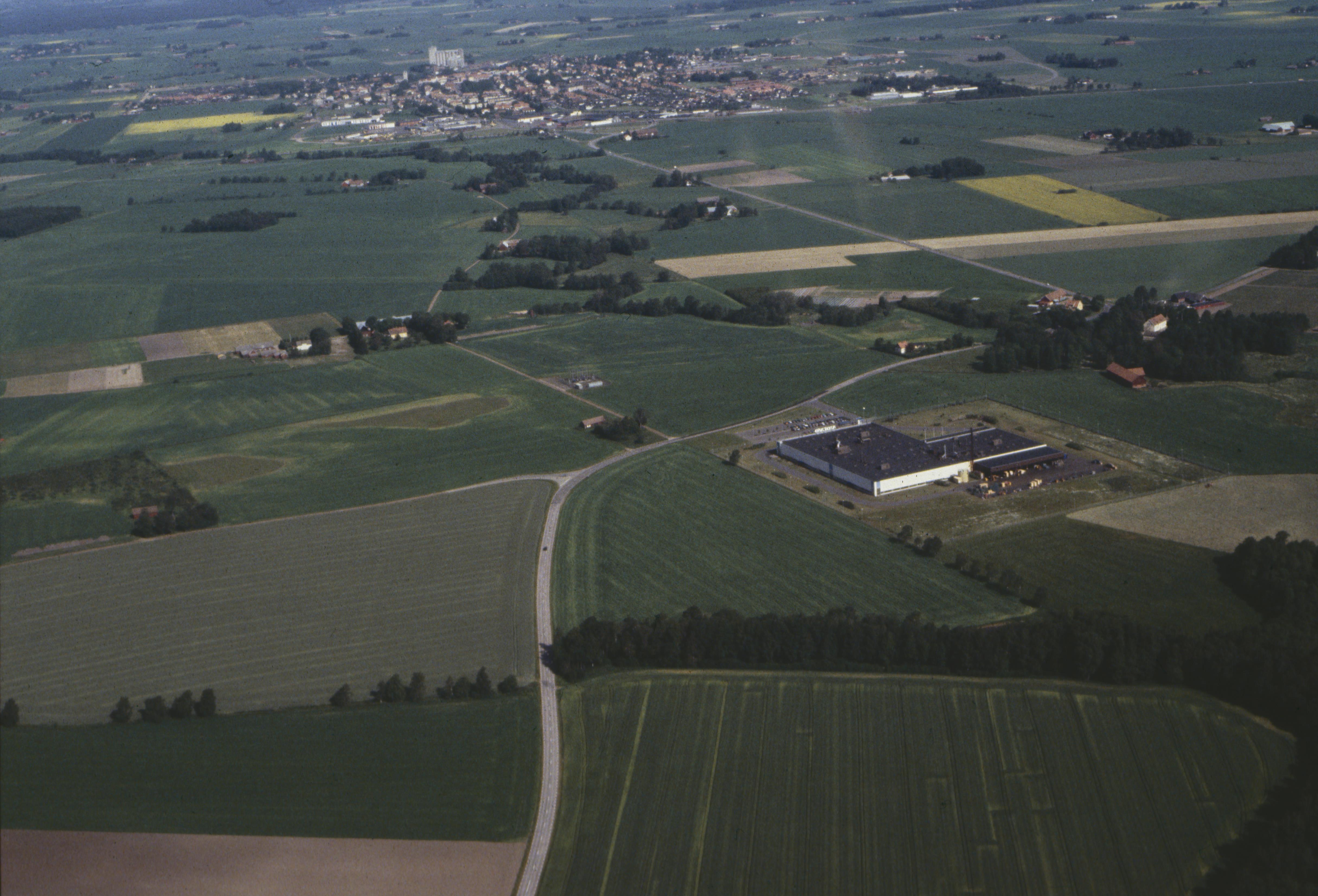 Beskrivning: Vid bildens mitt industribyggnader och boplats RAÄnr Önum 54:1 vid Stommen. I bildens övre del Afsån mot Vara tätort i Vara socken. Bilden är tagen mot (väderstreck): NNV