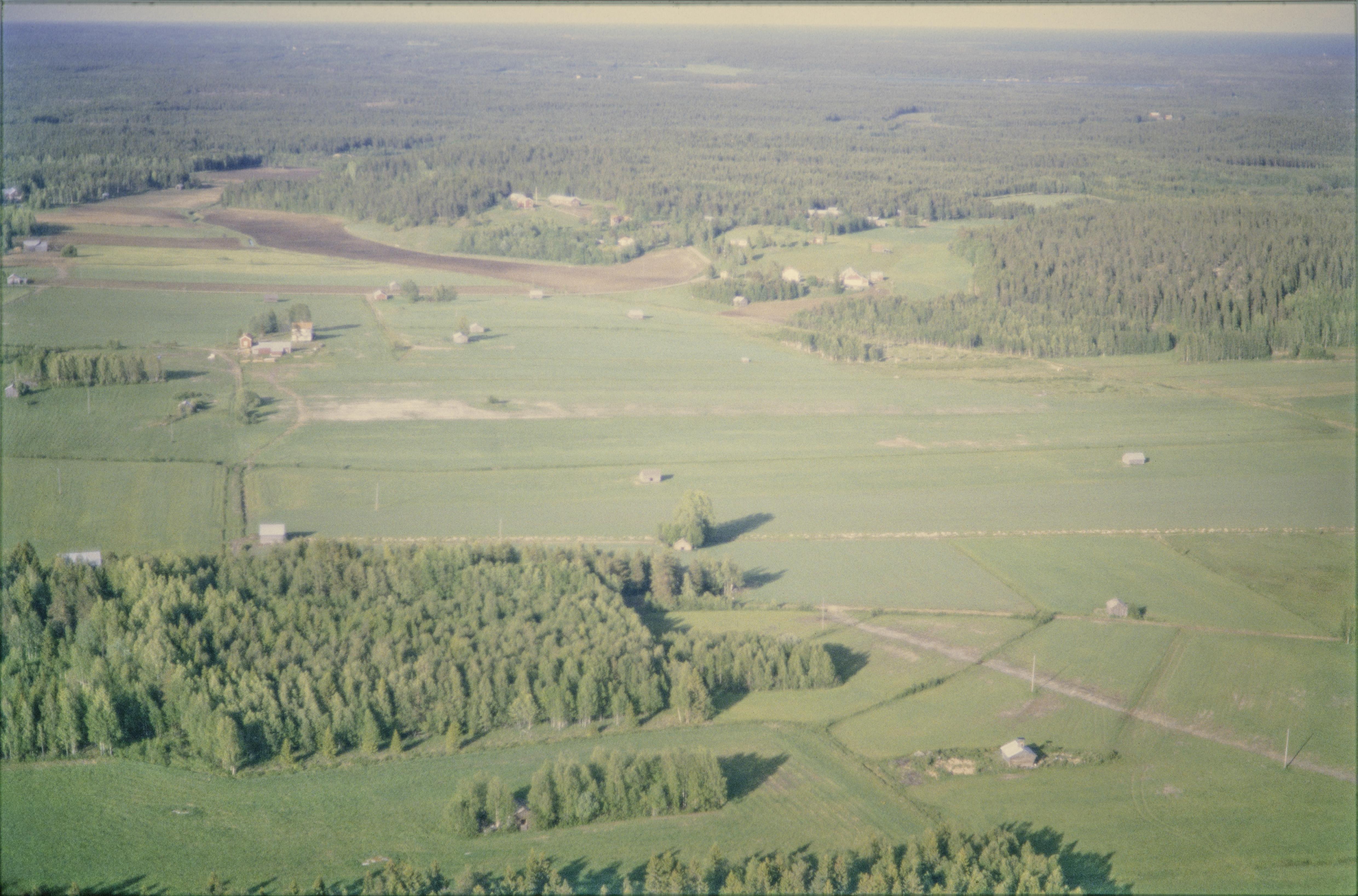 Beskrivning: Grimsmarks by vid Frängsmyrsbäcken. Odlingsmark med ängslador. Vid vägen i bildens övre kant vägmärke RAÄnr Nysätra 250:1. Bilden är tagen mot (väderstreck): ONO