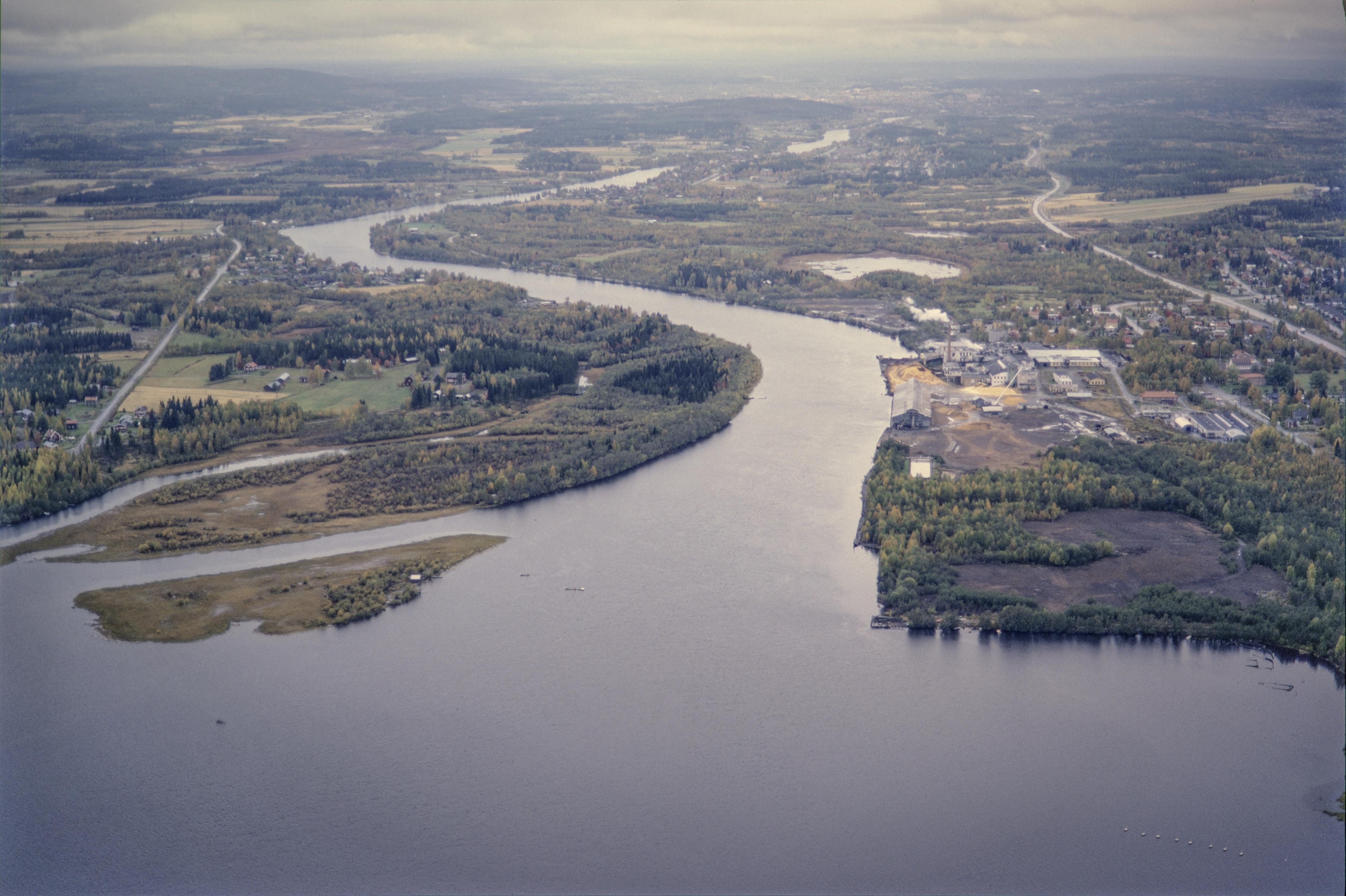 Beskrivning: Skellefteälven vid Ursviksfjärden. Älven markerar gränsen mellan socknen Skellefteå socken (till vänster) och Skellefteå stad. Till vänster områdena Stackgrönnan och Bondberget med stensättning RAÄnr Skellefteå stad 201:1. Till höger Klemensnäs i Ursvikens tätort. Bilden är tagen mot (väderstreck): VNV