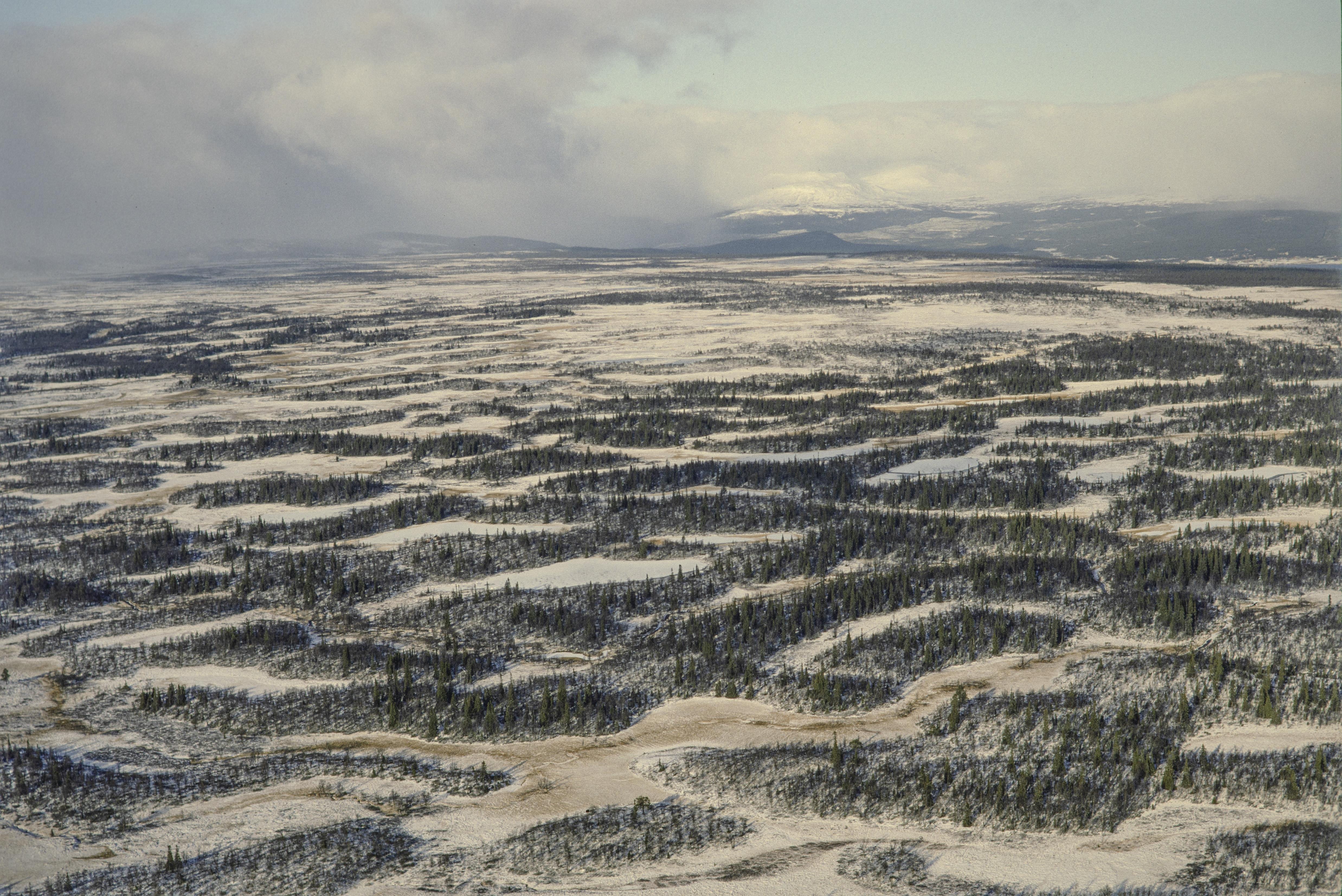 Beskrivning: Sjö- och myrområdet Brötarna, Gräsmyrarna och Stor-Gräsmyråsen. aI området fångstgrop RAÄnr Storsjö 151:1 m.fl. Fjället Högrensvålen (Gåertiesvaarta) i bildens övre del. Bilden är tagen mot (väderstreck): VNV