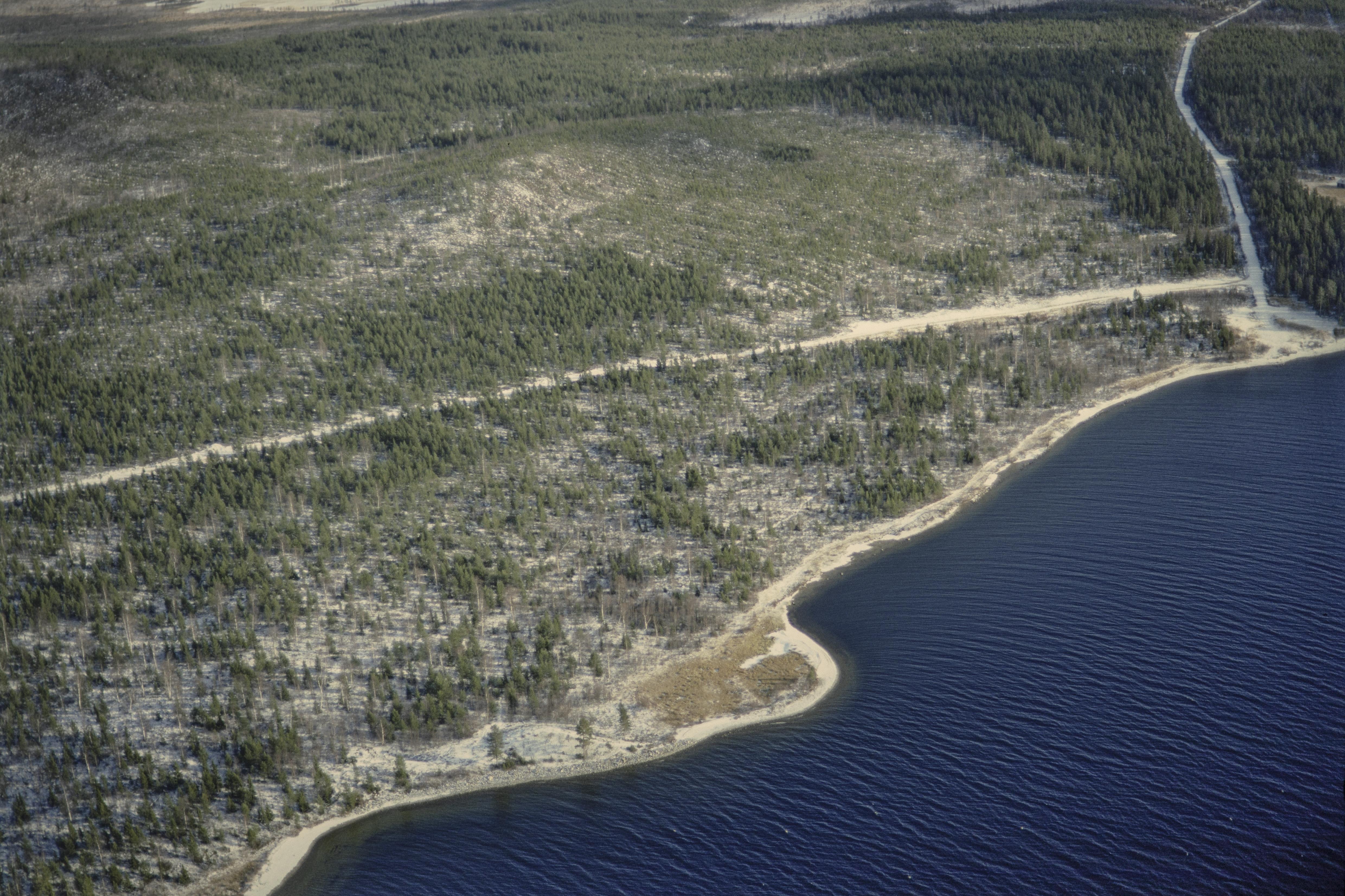 Beskrivning: Nere i vänstra hörnet gravfält Krankmårtenhögen (skrivs även (Krank-Mårtenhögen) RAÄnr Storsjö 9:1 vid Storsjön. I området även boplats RAÄnr Storsjö 154:1 och 254:1, fångstgrop Storsjö 155:1 m.m. Bilden är tagen mot (väderstreck): ONO