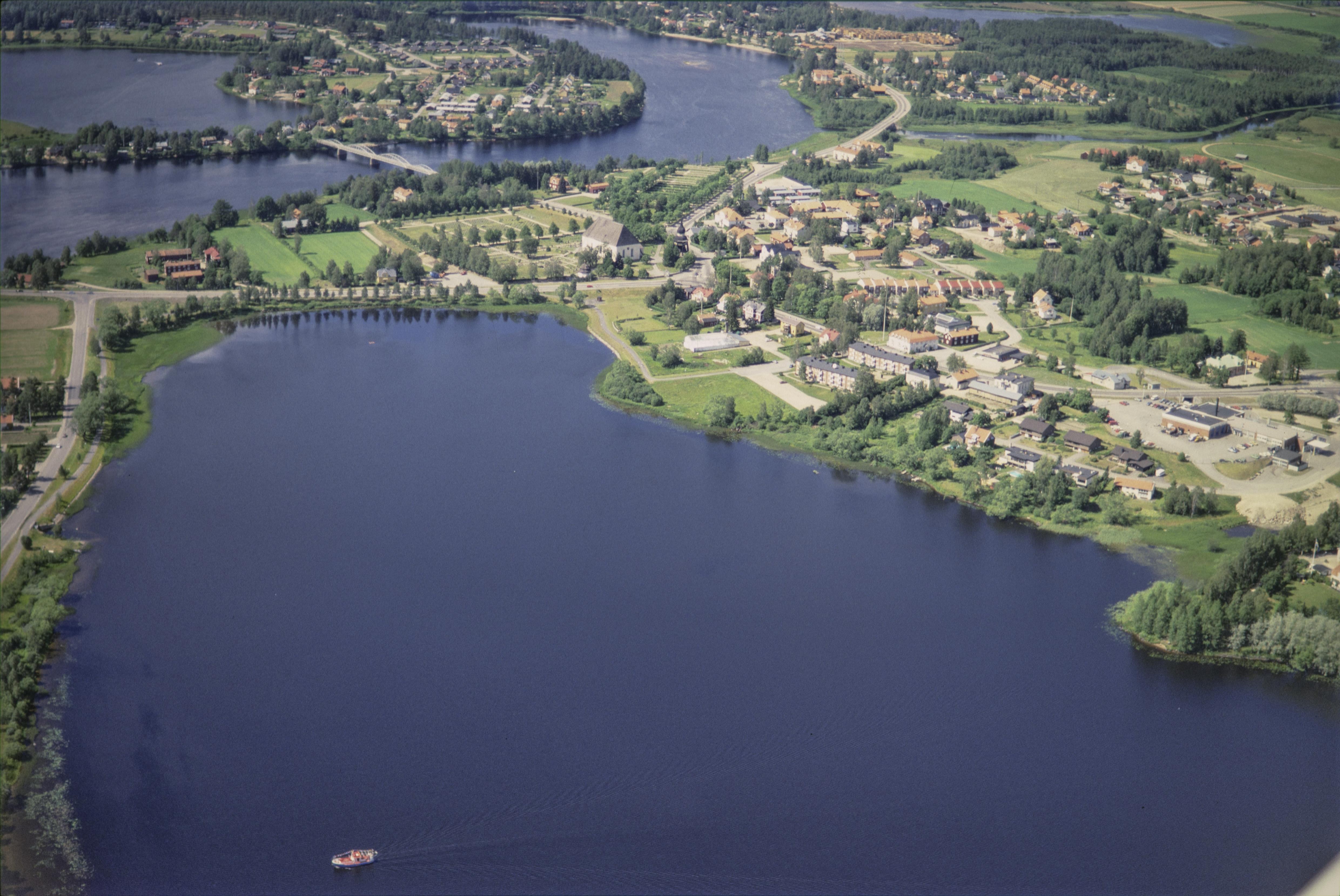 Beskrivning: Ljusdals tätort och kyrkby mellan älven Ljusnan och Kyrksjön. Ljusdals kyrka över bildens mitt. Vid kyrkan bytomt RAÄnr Ljusdal 375:1. Bilden är tagen mot (väderstreck): NV