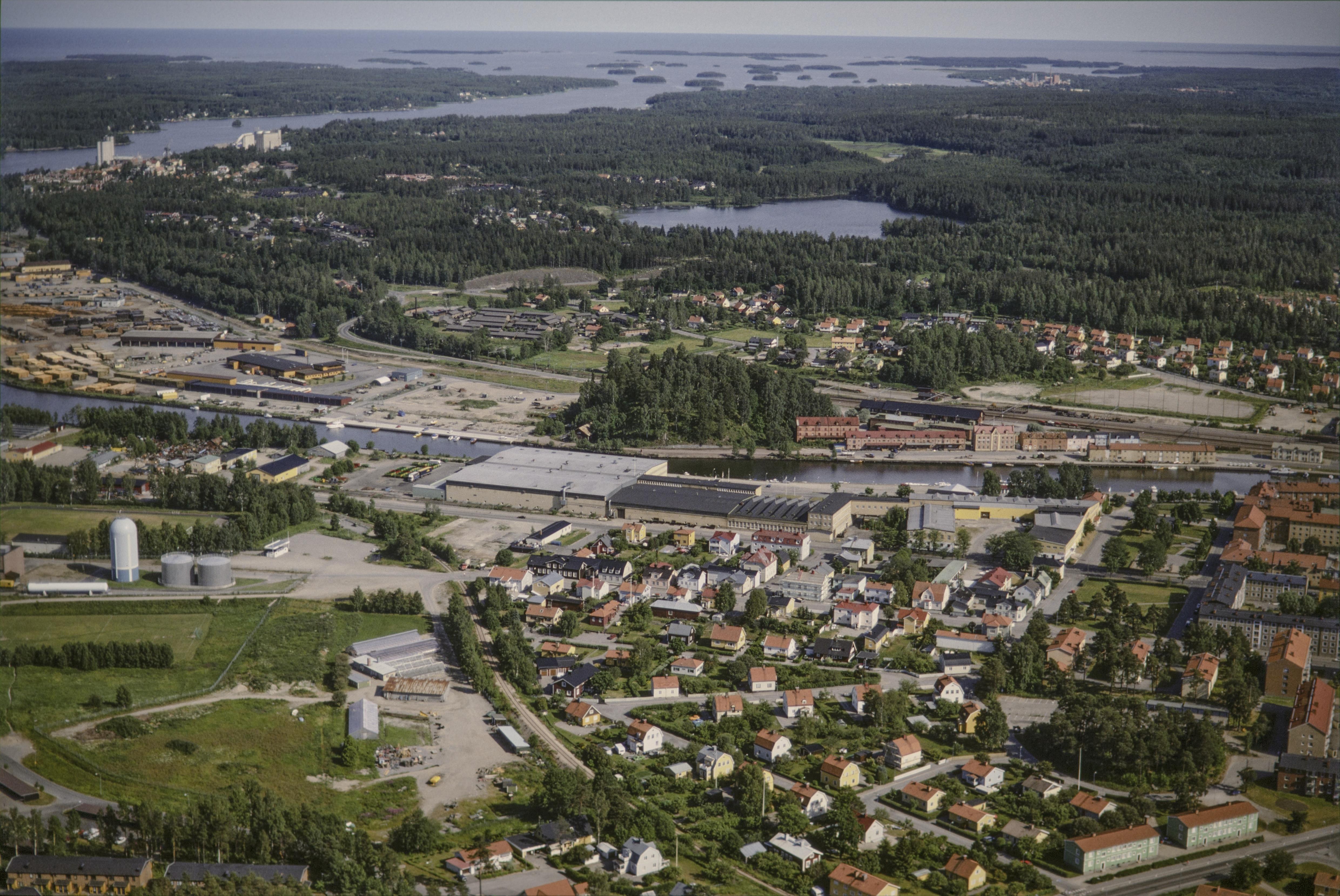 Beskrivning: Söderhamns tätort vid Söderhamnsfjärden. Stadslager RAÄnr Söderhamn 26:1 till höger om bildens mitt. Runt trädklungan vid bildens mitt området Faxeholmen med bogruin Faxehus RAÄnr Söderhamn 4:1. Bilden är tagen mot (väderstreck): SO
