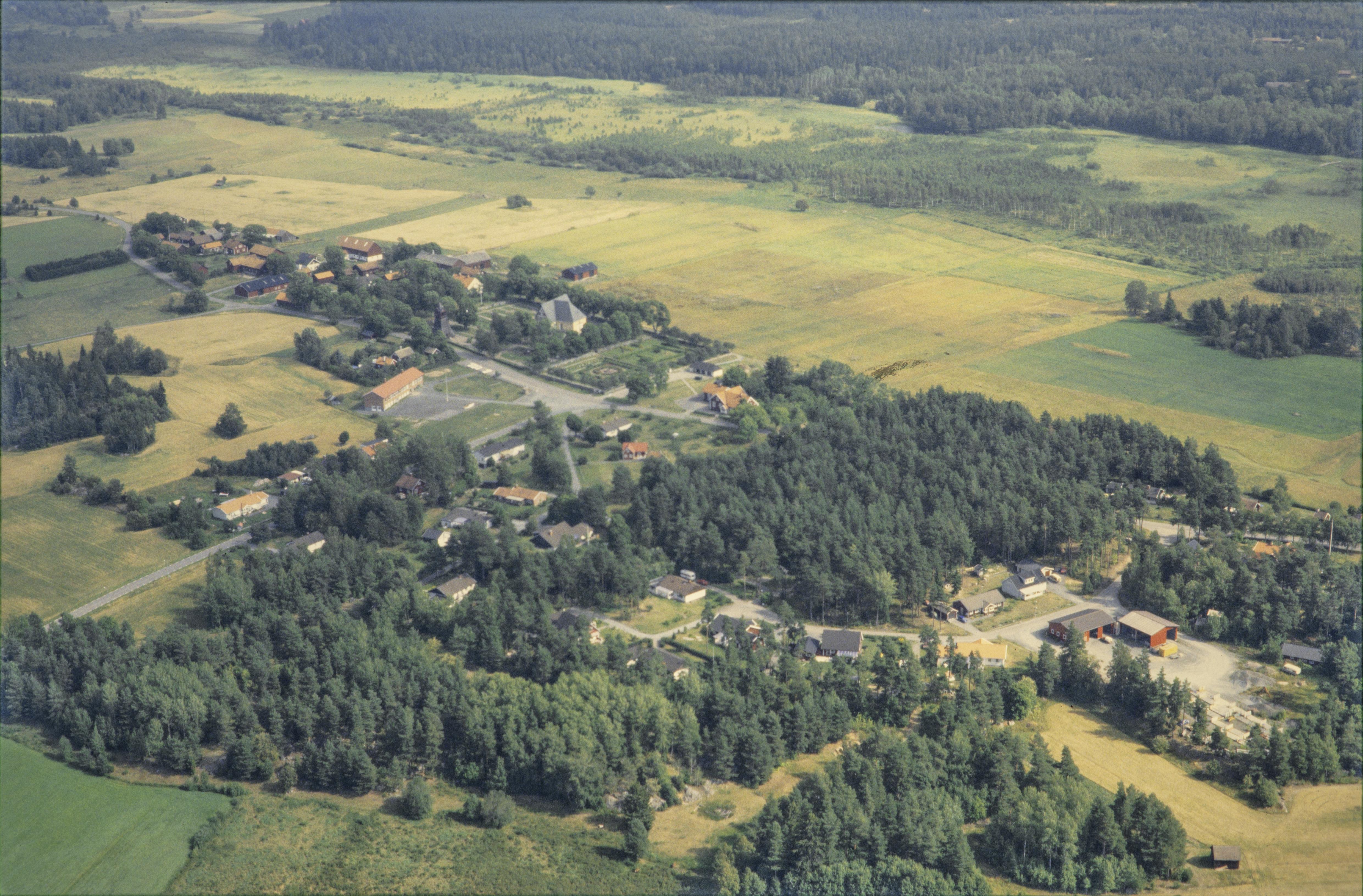 Beskrivning: Films kyrka och kyrkby i Broåns dalgång. Vid kyrkan bytomt RAÄnr Film 254:1 m.fl. Bilden är tagen mot (väderstreck): ONO