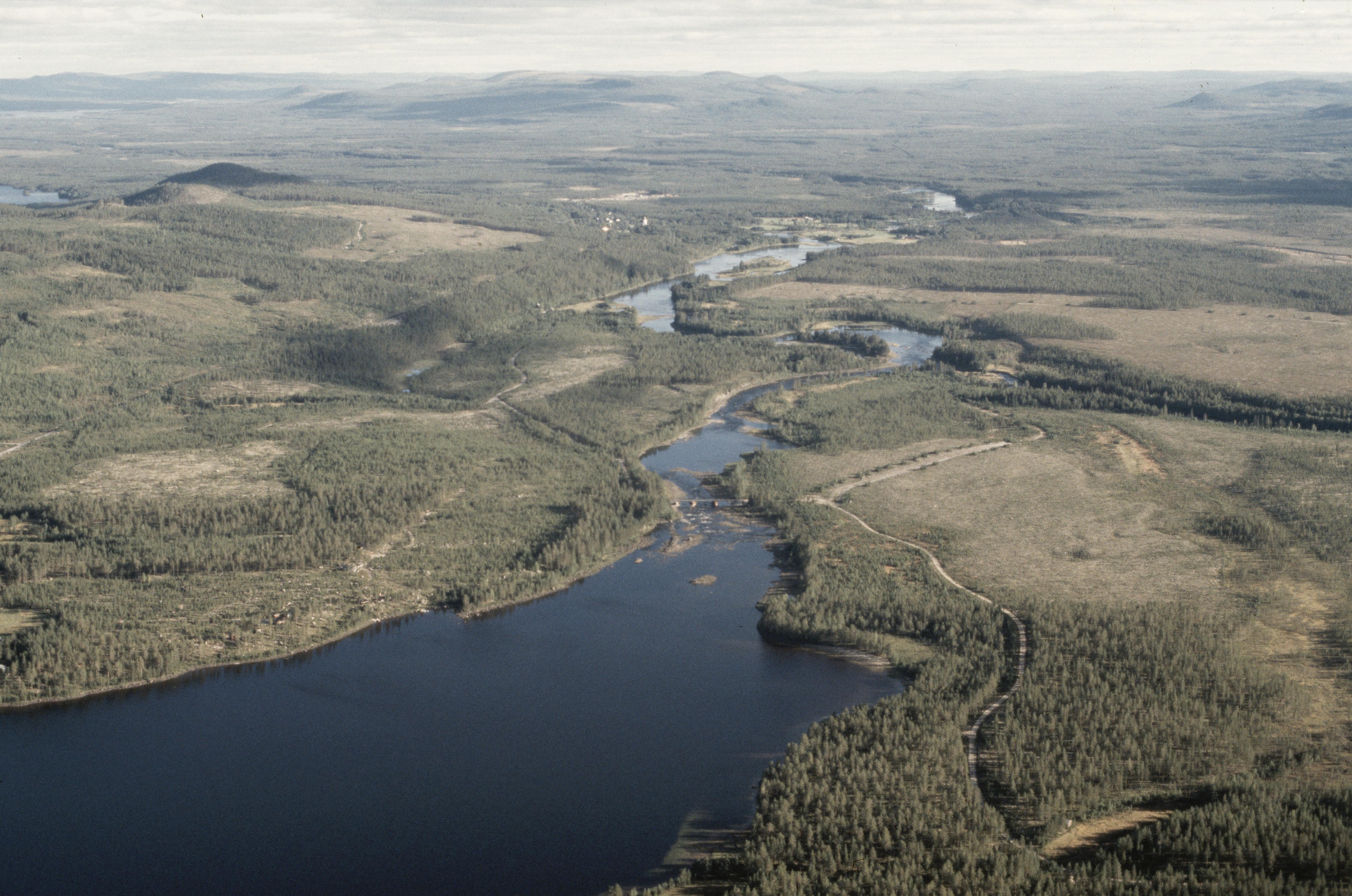 Beskrivning: Älven Ljusnan i södra delen av Neder-Ransjön, sydväst om Ransjö by. Vid bildens mitt bro RAÄnr Linsell 92:1 över Ransjöforsen i Linsellborrens naturreservat. Bilden är tagen mot (väderstreck): S