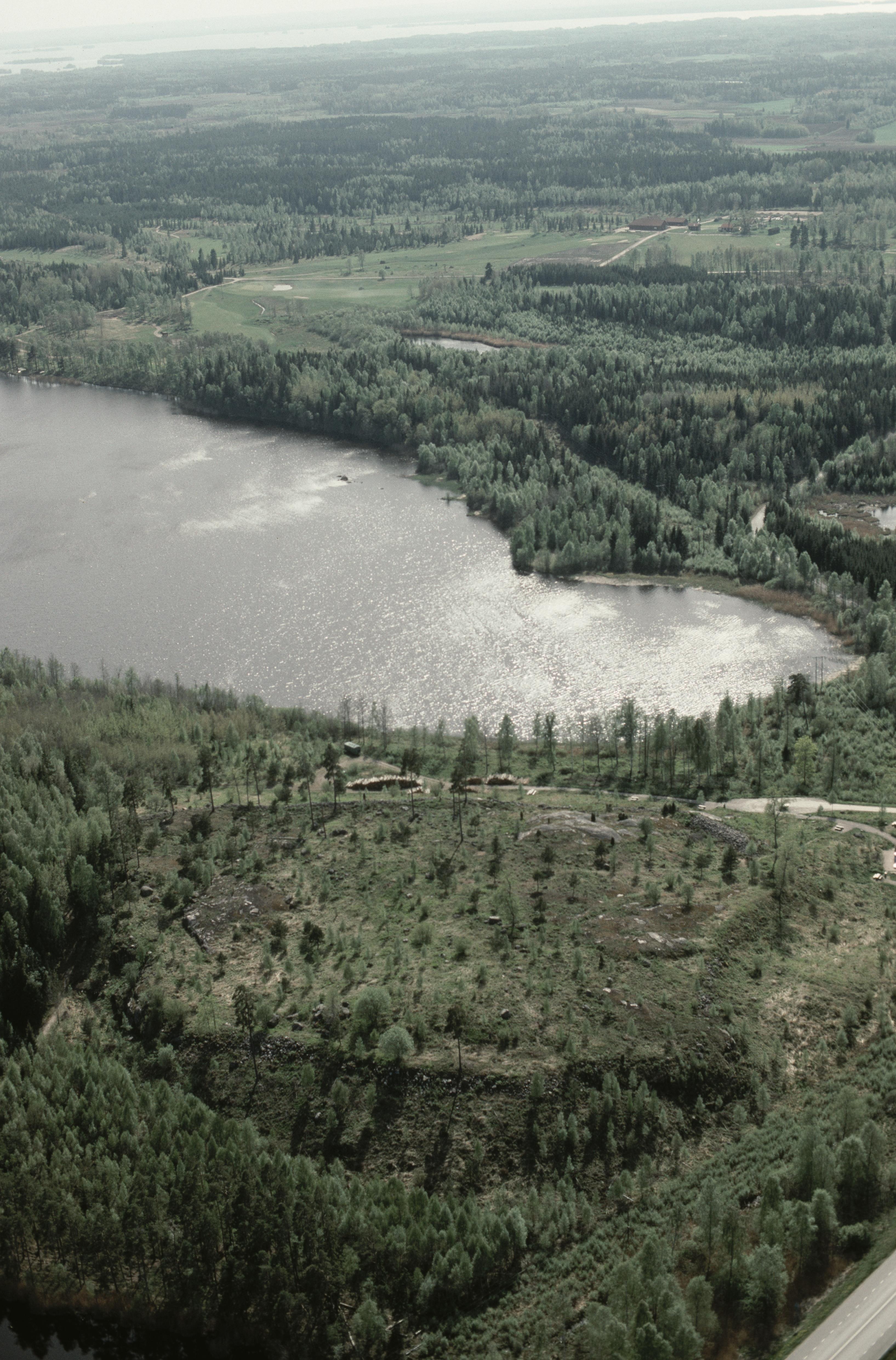 Beskrivning: Anmärkning (övrig): Riksintresse-nr/namn: U1 - Järnäs. Socken: Götlunda. Motivering: Odlingslandskap med medeltida anor och många bevarade, ålderdomliga strukturer kring Järnäs gårdar, unikt för länet. (Fornlämningsmiljö, Gårdsmiljö). - Uttryck för riksintresset: Mindre och medelstora gårdar och välbevarad torpbebyggelse. Brukade åkrar där röjningsrösen och små impediment med lövträd finns kvar i åkrarna. Stora, förmaskinellt brukade odlingsytor som omvandlats till betesmark. Små grusade vägar, stengärdsgårdar. Området har kontinuitet från bronsålder, och här finns gravfält med rösen, resta stenar, treuddar m.m. - I området ingår även: Stora delar vid Hjälmarsänkningen 1878-82 torrlagd mark. [Texten uppdaterat(…) Texten i detta fält har förkortats vid migrering till e-arkivet. Se filbilagan extra.xml för fullständig information under note_archivist. Beskrivning: Vid bildens mitt Halvardsborg RAÄnr Arboga socken 17:1 mellan sjöarna Sirisjön och Tjurlången. I bildens övre del riksintresset U1 i Götlunda socken. Bilden är tagen mot (väderstreck): S Fotosyfte: Flygbildsdokumentation