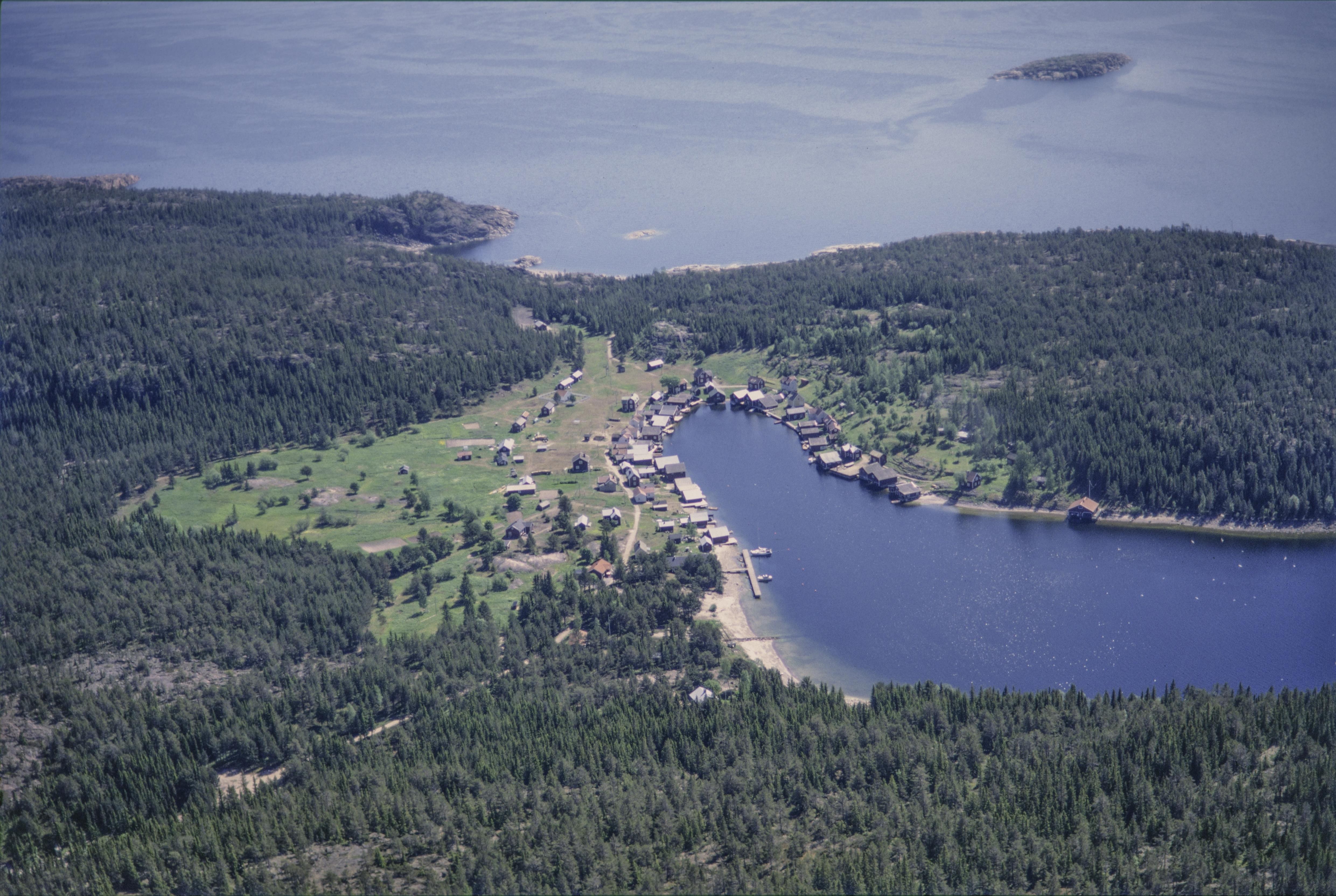 Beskrivning: Höga kustens världsarvsområde. Ön Trysunda i naturreservat öster om Nätrafjärden. I bildens mitt Trysunda fiskeläge med Trysunda kapell. Bilden är tagen mot (väderstreck): SSO