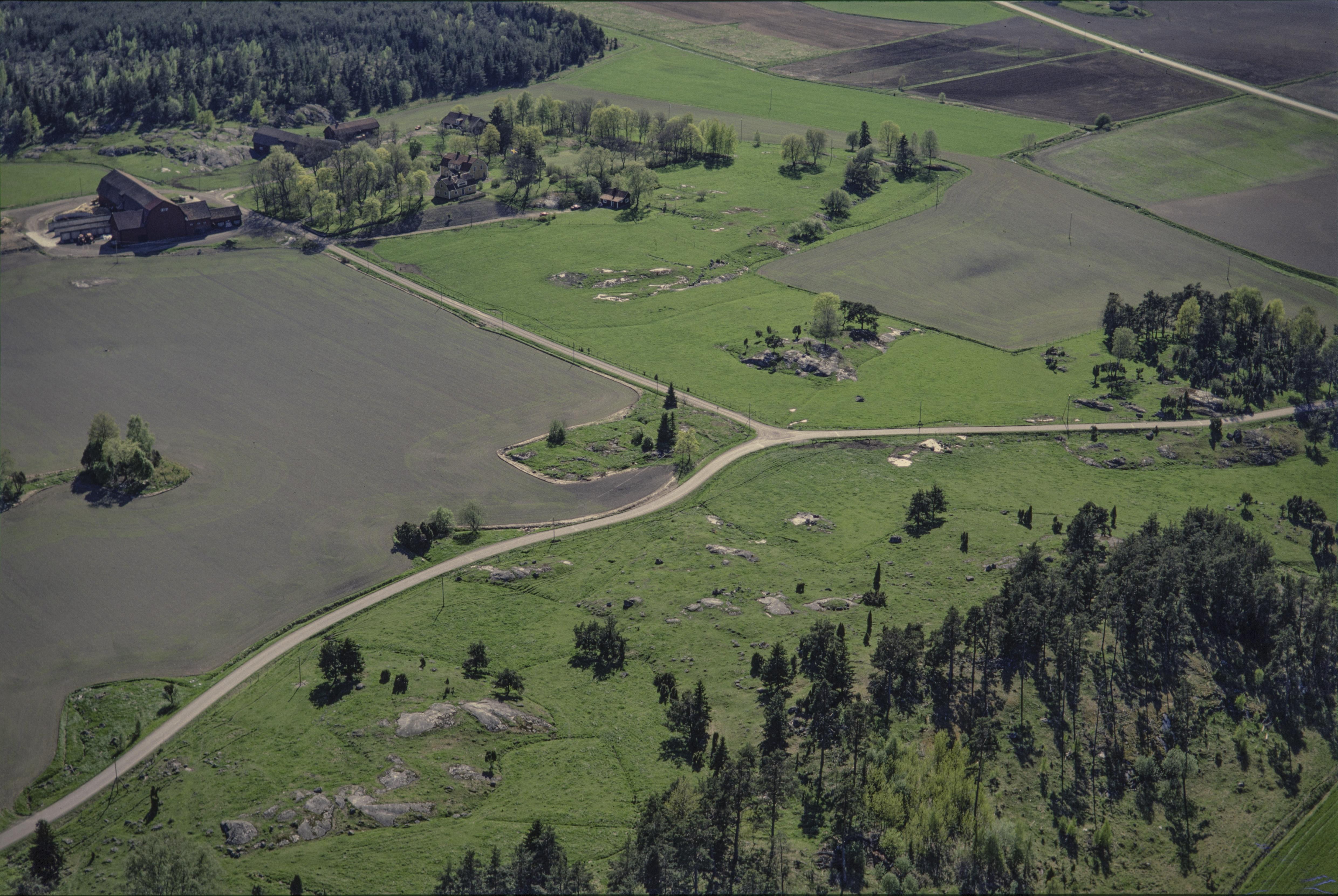 Beskrivning: Tjusta gård. Vid bildens mitt bytomt RAÄnr Skånela 261. Bilden är tagen mot (väderstreck): SV