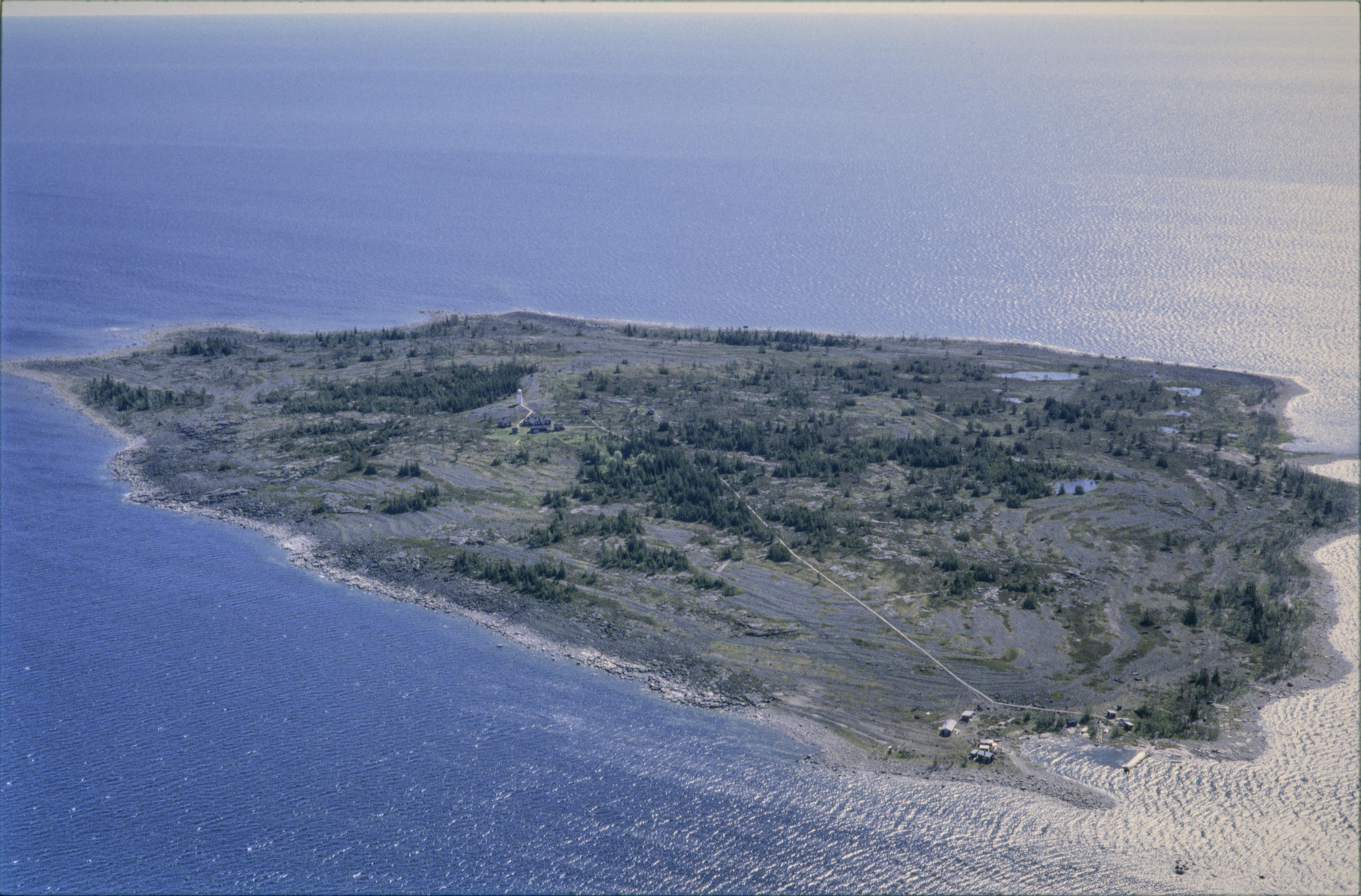 Beskrivning: Ön Stor-Fjäderägg (skrivs även Stora Fjäderägg). Vid bildens mitt fyrplats RAÄnr Holmön 28:1. På ön även flera labyrinter. Stor-Fjäderägg ingår i ögruppen Holmöarna i sundet Norra Kvarken. Bilden är tagen mot (väderstreck): OSO