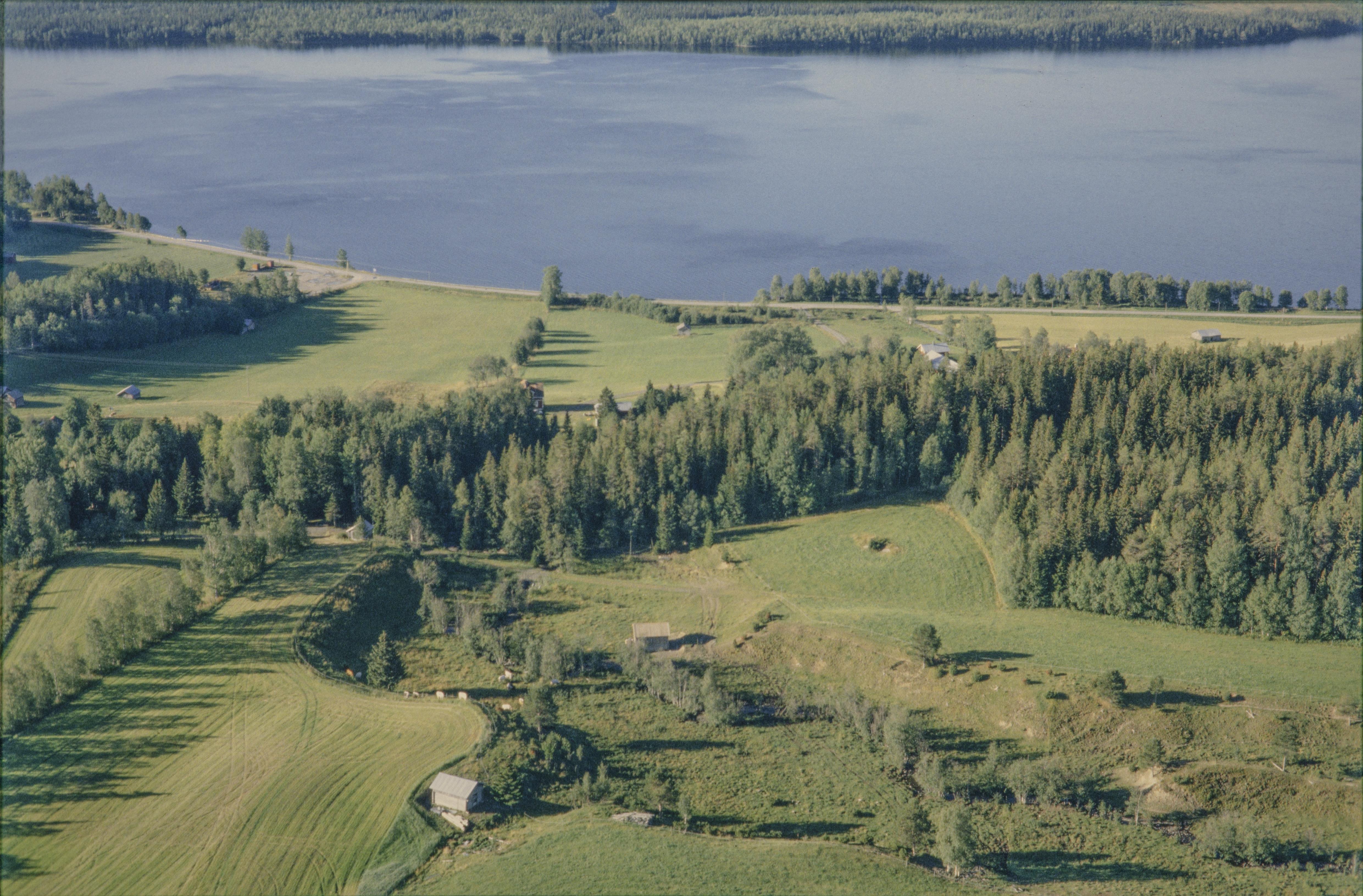 Beskrivning: Glösa by vid pilgrimleden Sankt Olavsleden på nordsidan av Alsensjön. I skogen till vänster om bildens mitt Glösaberget med hällristningar RAÄnr Alsen 13:1. Bilden är tagen mot (väderstreck): SSV