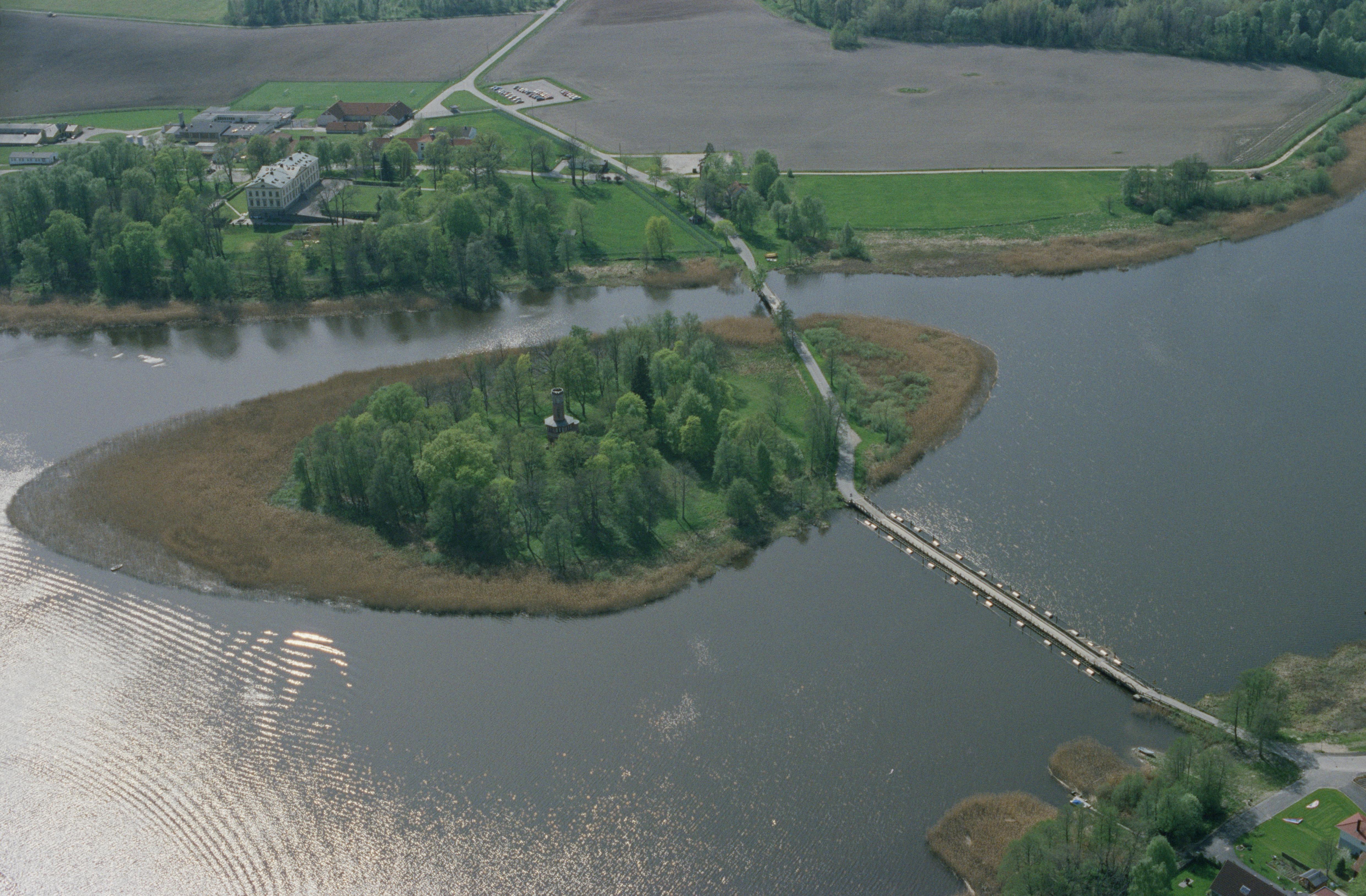 Beskrivning: Uppe till vänster Hinsebergs herrgård vid sjön Väringen. Herrgården är numera kriminalvårdsanstalt / fängelse / Anstalten Hinseberg. Frövi tätort i bildens nedre kant. I sjön vid ön Kaninholmen fyndplats (stockbåt) RAÄnr Näsby 63:1. Bilden är tagen mot (väderstreck): V