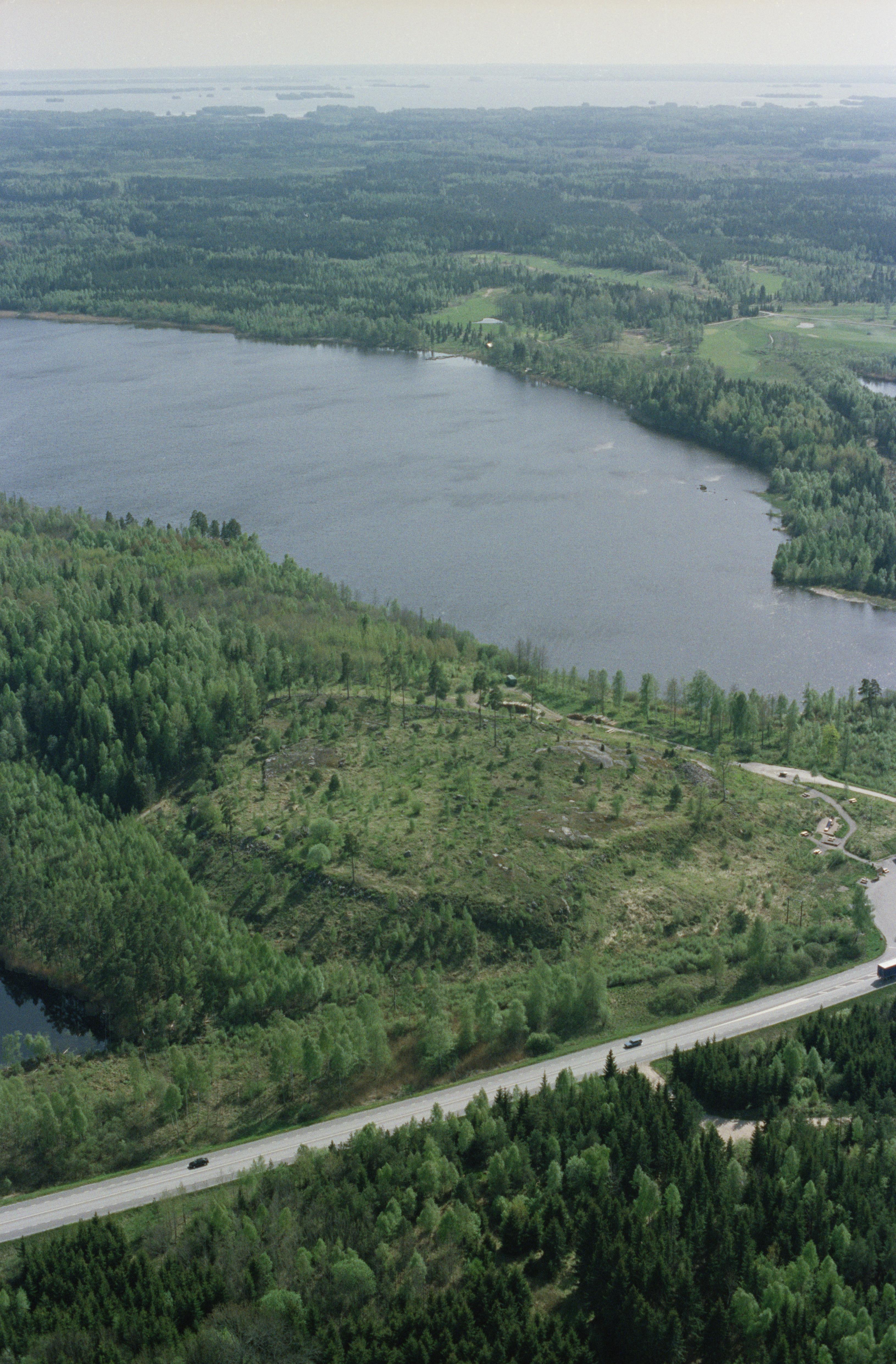 Beskrivning: Vid bildens mitt Halvardsborg RAÄnr Arboga socken 17:1 mellan sjöarna Sirisjön och Tjurlången. I bildens övre del riksintresset U1 Järnäs i Götlunda socken. Bilden är tagen mot (väderstreck): S