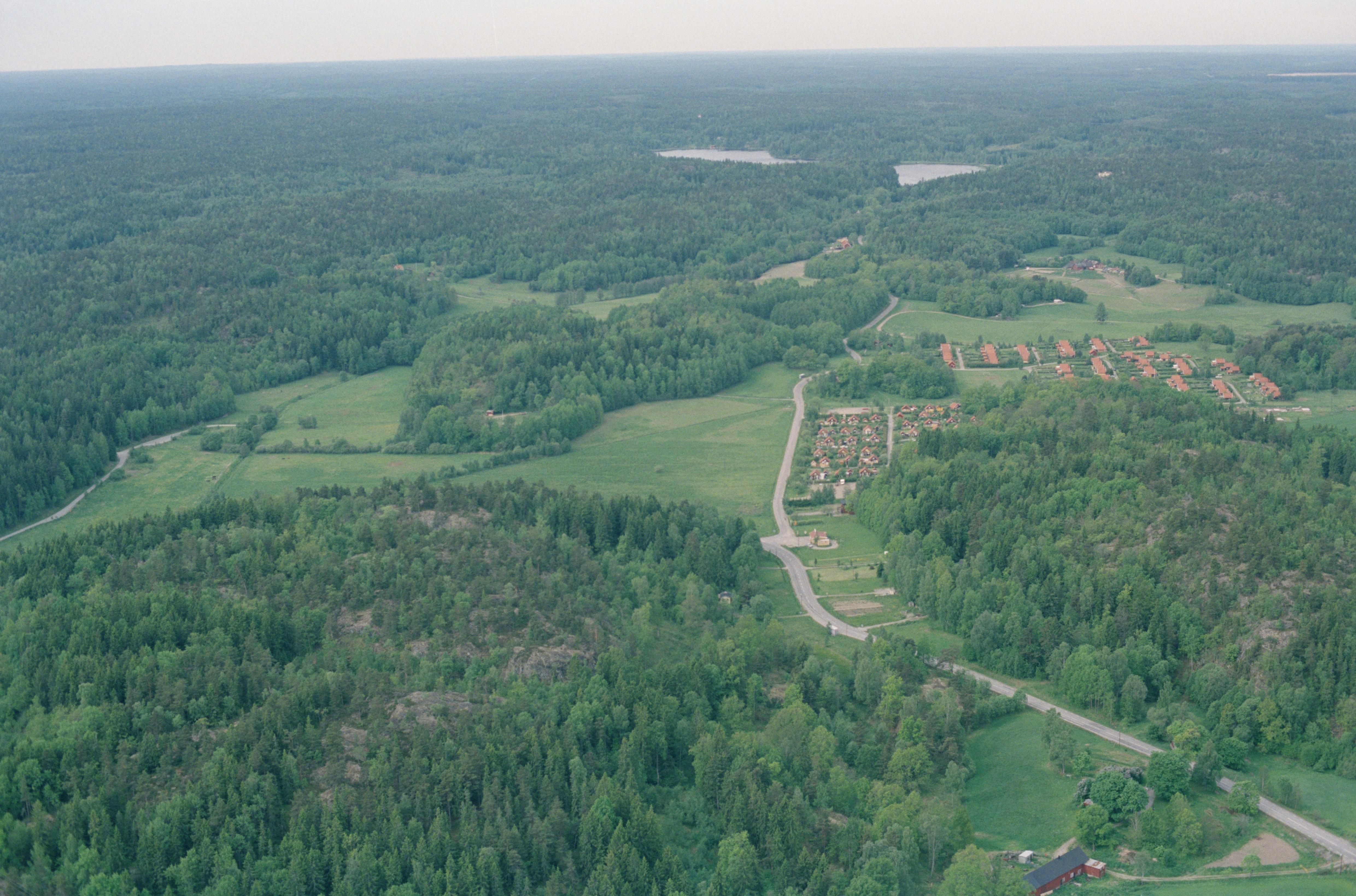 Beskrivning: I bildens nedre del färdväg RAÄnr Huddinge 249:1-2. Till höger om bildens mitt grav- och boplats RAÄnr Huddinge 248:1-2 vid Ekedal koloniområde. Bilden är tagen mot (väderstreck): SV