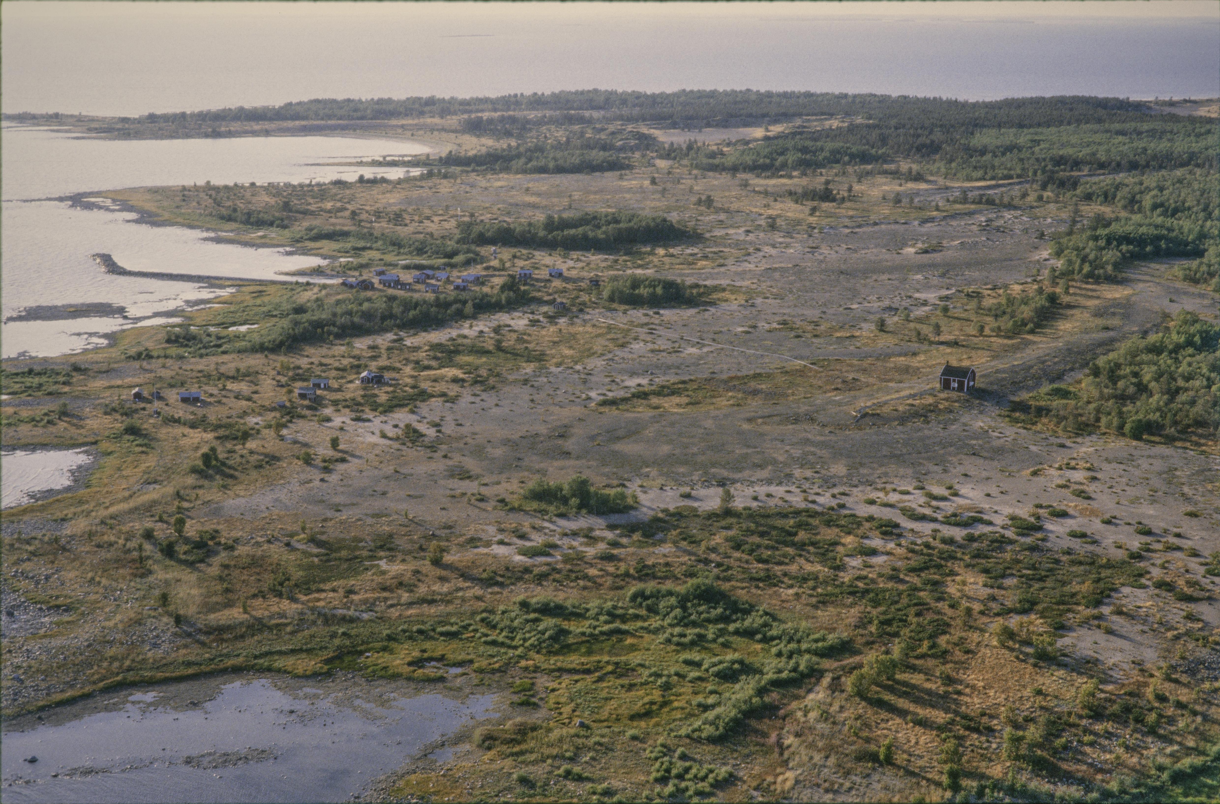 Beskrivning: Södra delen av ön Sandskär (Sanskeri) i Haparanda skärgårds nationalpark och naturreservat. Vid bildens mitt Kumpula fiskeläge, Sandskärs kapell, gravplats, färdväg RAÄnr Nedertorneå 20:1-6, 62:1, 65:1, m.m. Bilden är tagen mot (väderstreck): NV